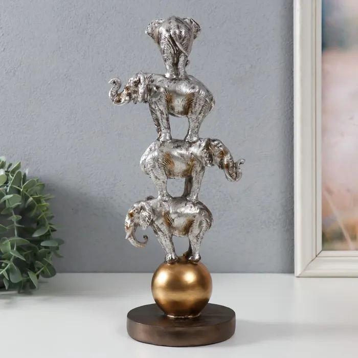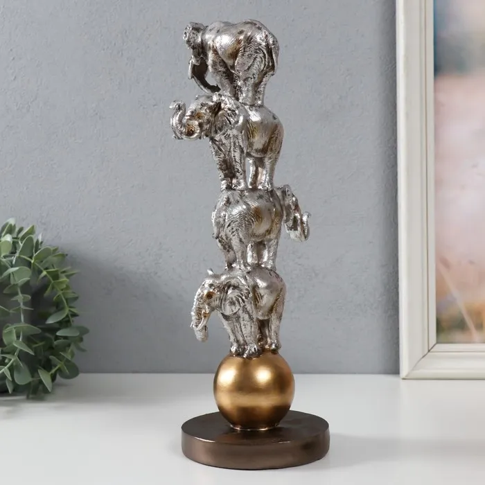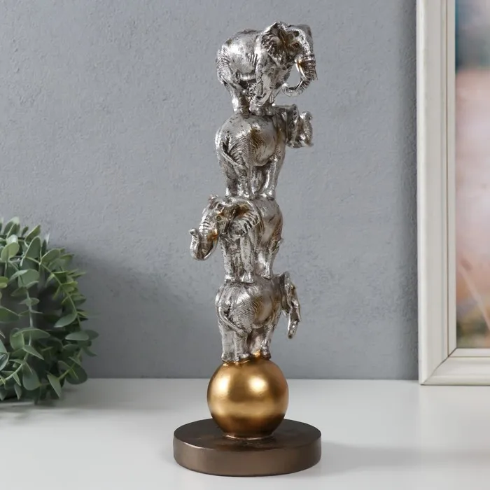 Фигурка полистоун «Четыре слона на шаре: пирамида», серебро, 13.1×11.1×31 см — Характеристики