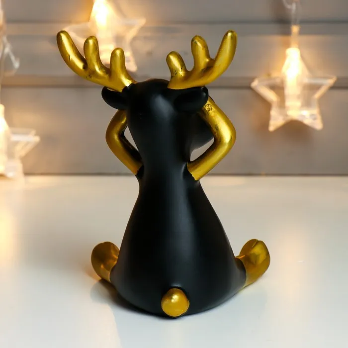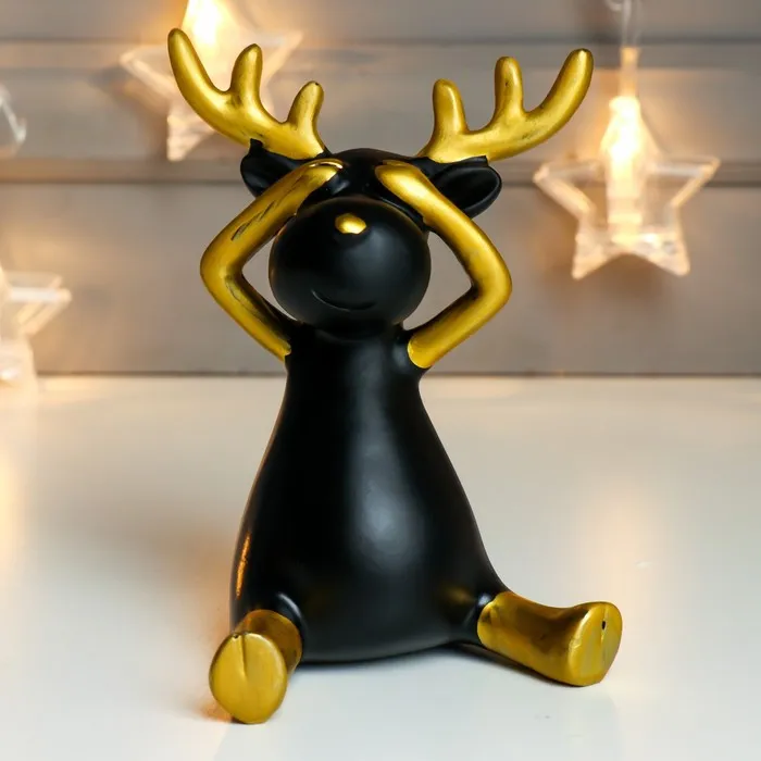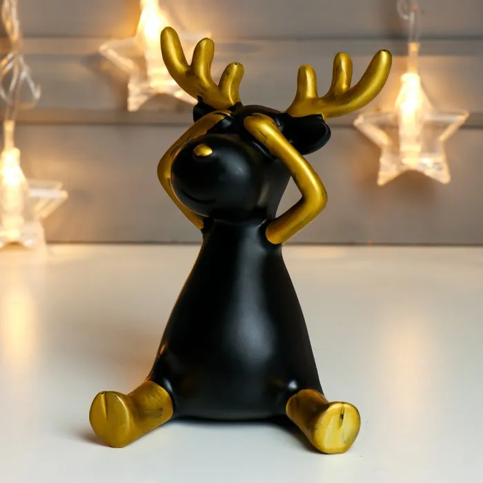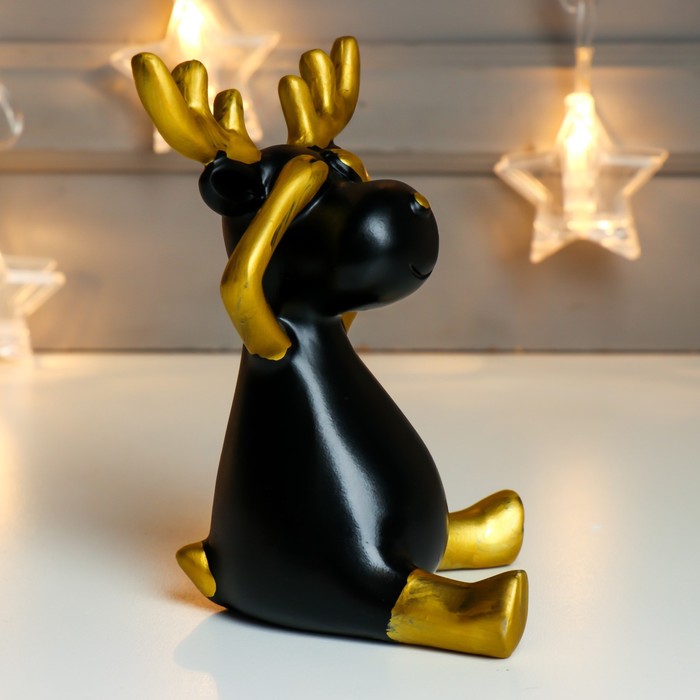 Фигурка полистоун «Чёрный олешка с золотыми рожками - ничего не вижу», 14×9×9 см — Характеристики