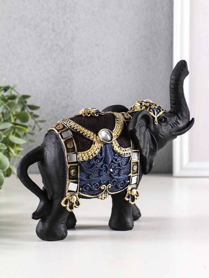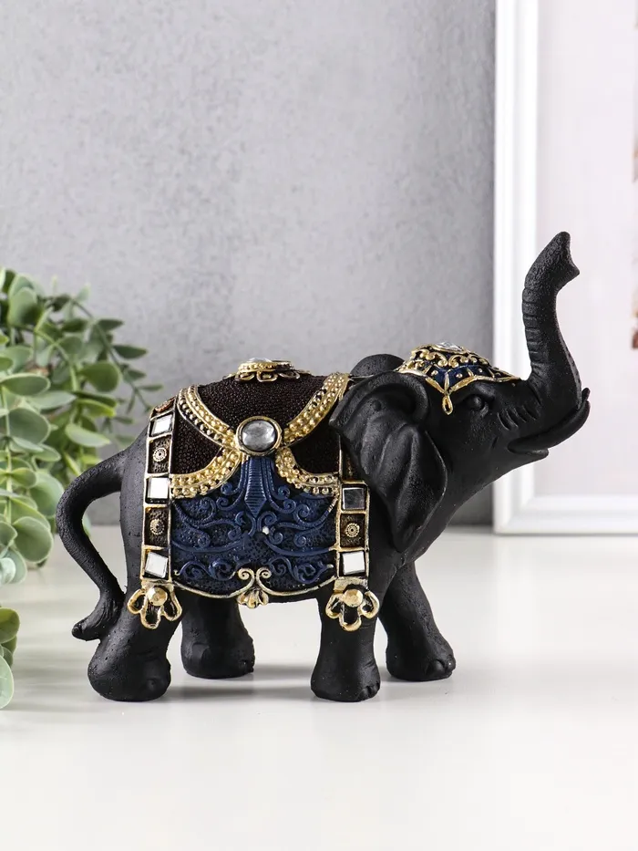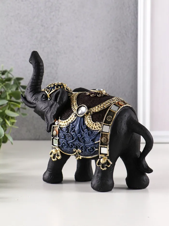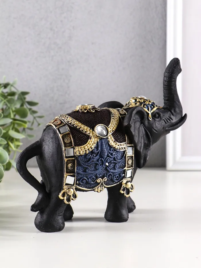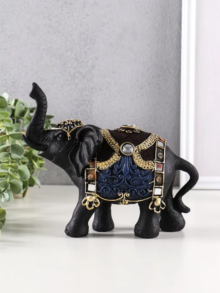 Величественный силуэт этого азиатского красавца сразу приковывает взгляд. Черный слон с искусно выполненной попоной, украшенной яркими орнаментами, станет эффектным акцентом в любом интерьере.