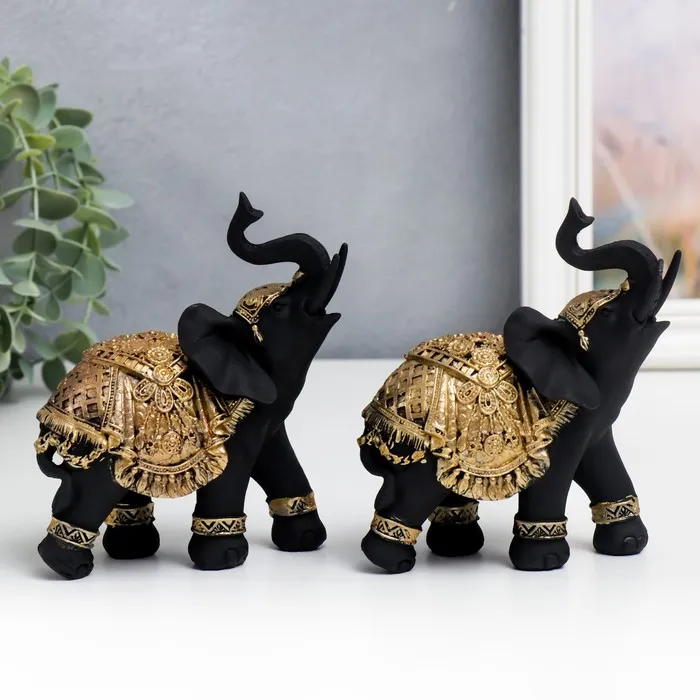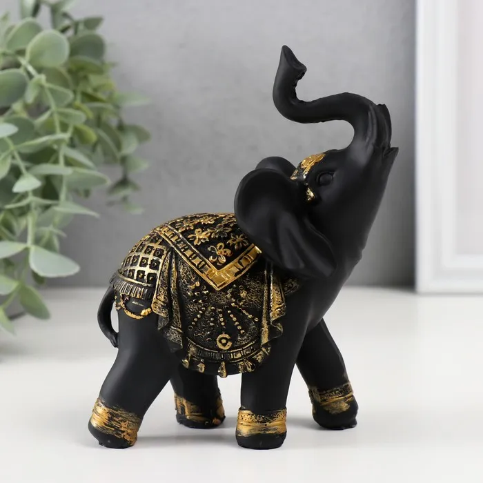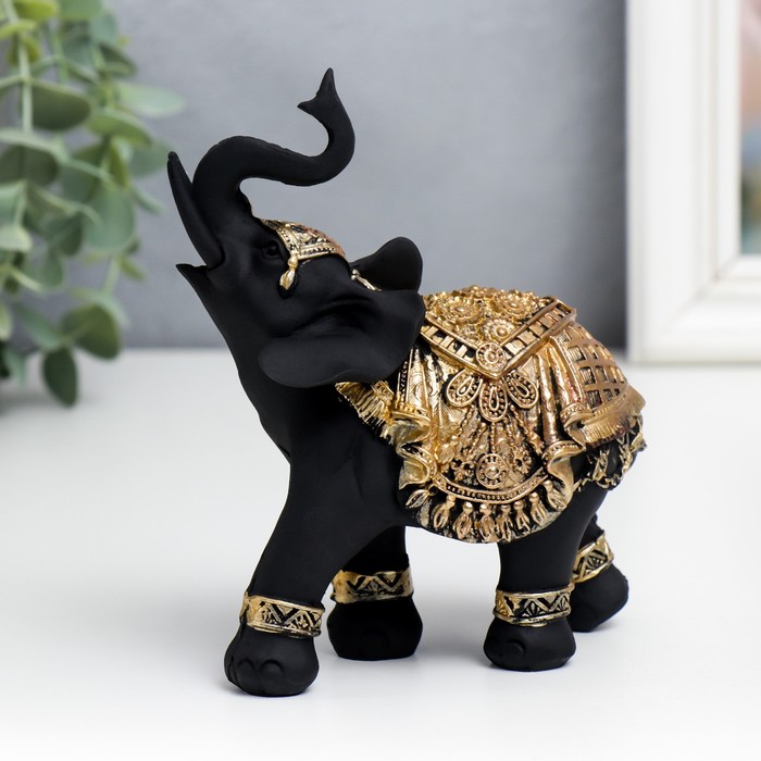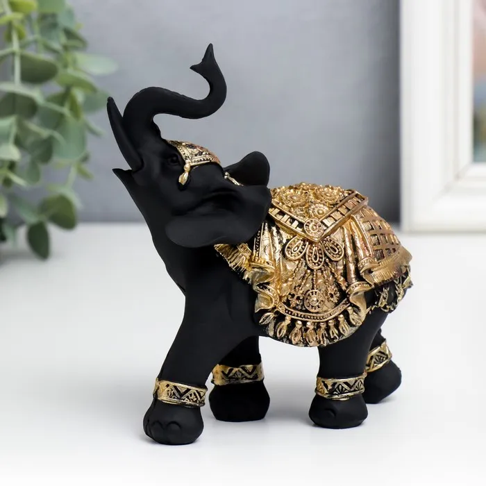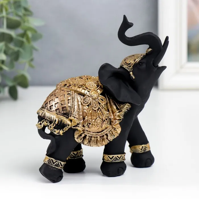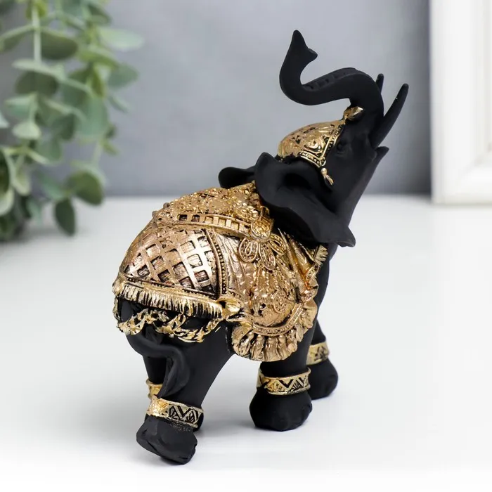 Фигурка полистоун «Чёрный слон в золотой богатой попоне», 14×6×12.6 см, МИКС — Характеристики