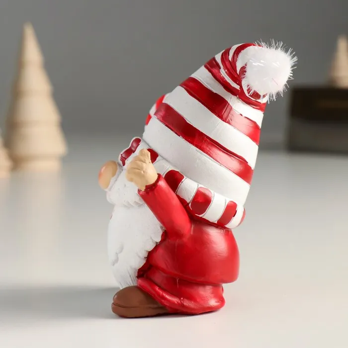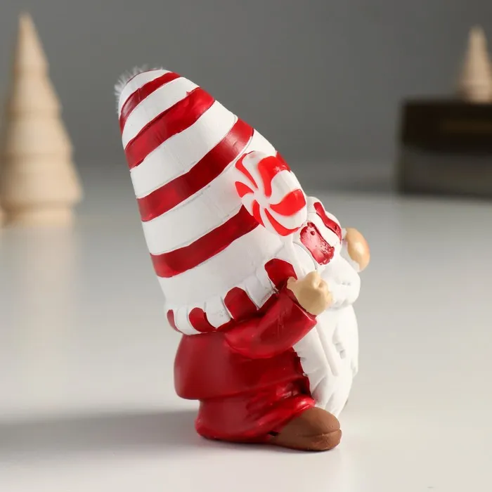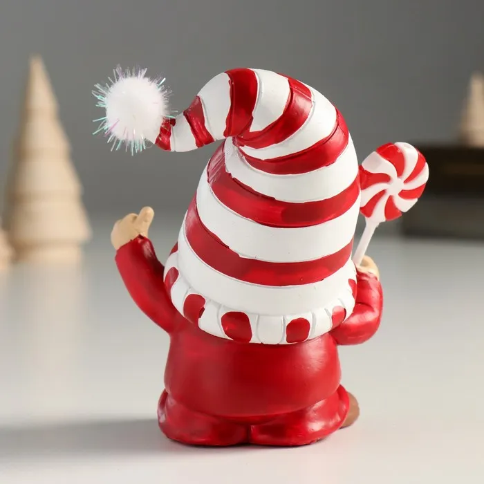 Фигурка полистоун «Дед Мороз в белом колпаке в красную полоску, с леденцом», 9×6.5×10 см — Характеристики