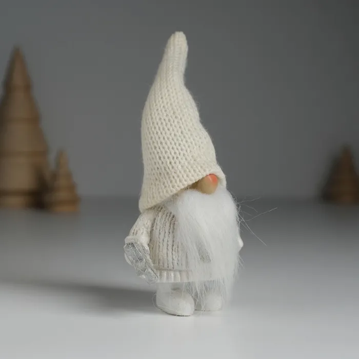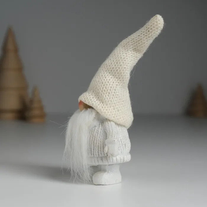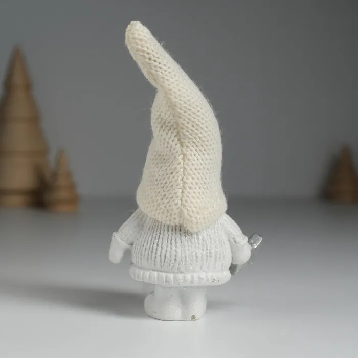 Фигурка полистоун «Дед Мороз в белом вязанном колпаке, с серебристой звёздочкой», 5×3.5×13 см — Характеристики