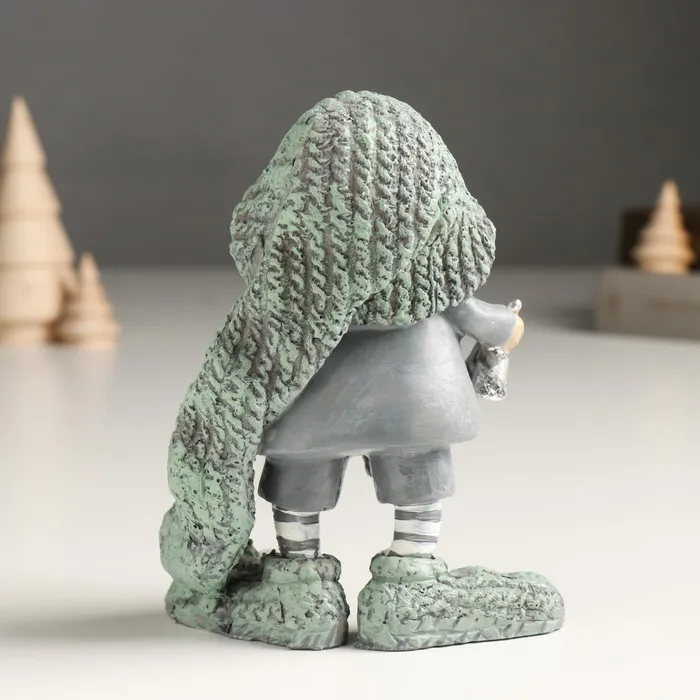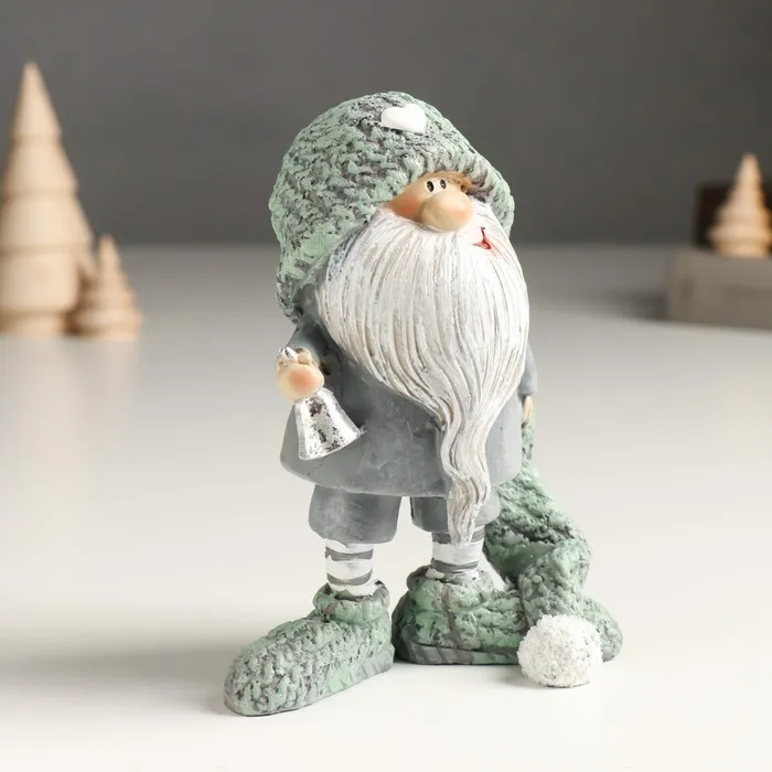 Фигурка полистоун «Дед Мороз в длинном вязанном колпаке с колоколом», серый, 6.5×11.5×14 см — Характеристики