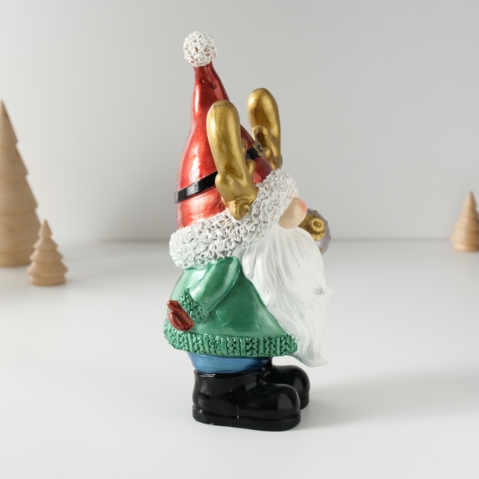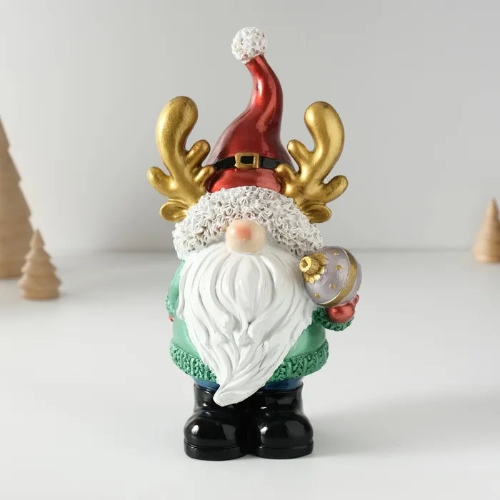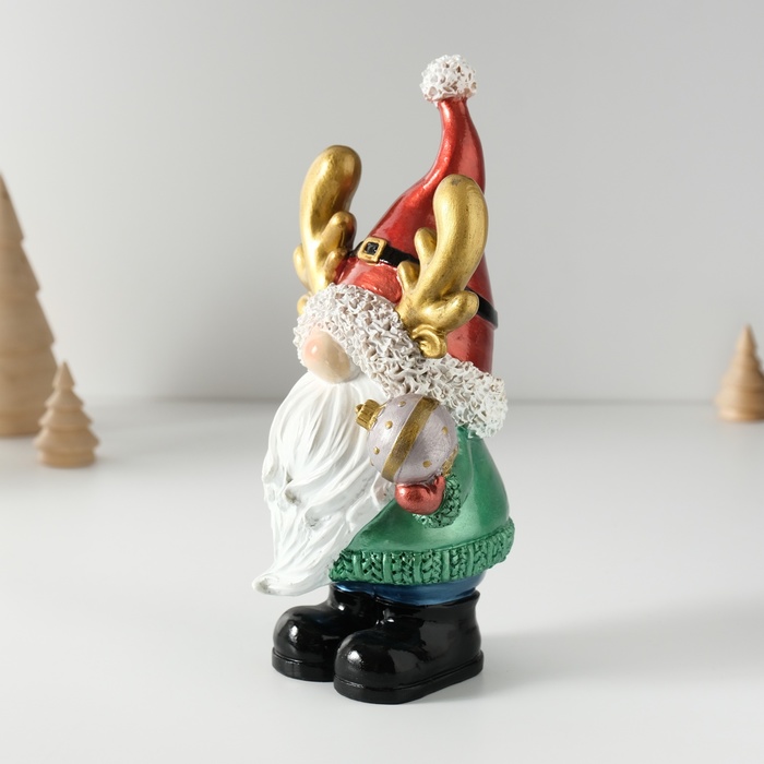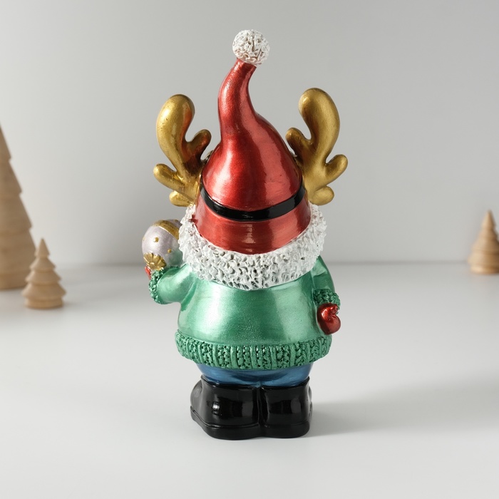 Фигурка полистоун «Дед Мороз в колпаке с рожками, с ёлочным шариком», 11×9.5×21 см — Характеристики