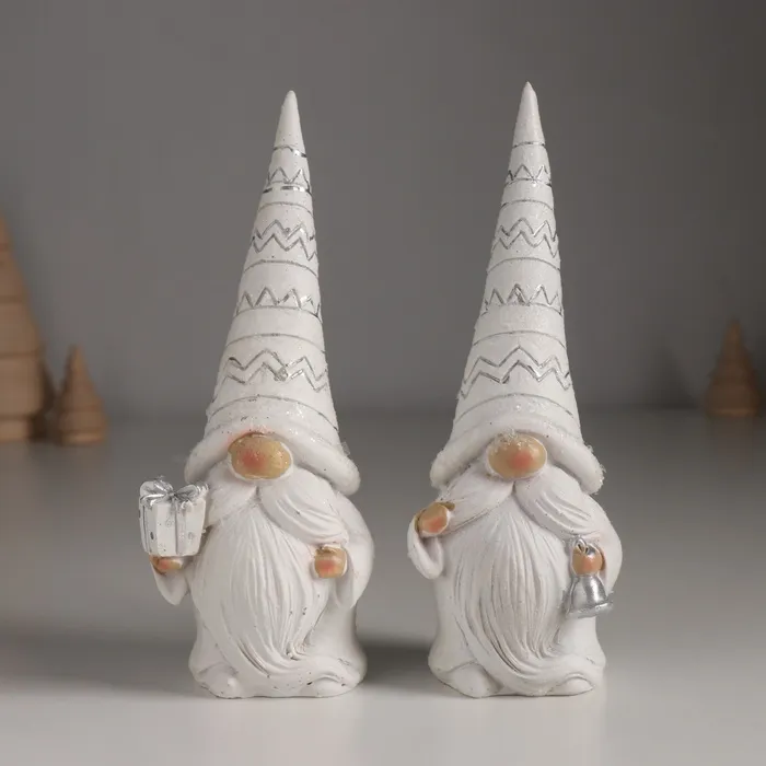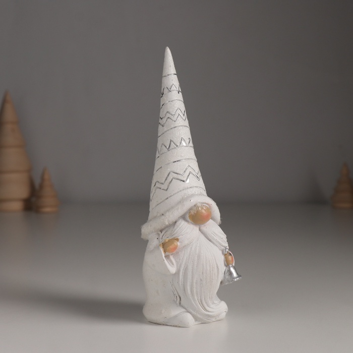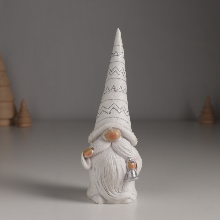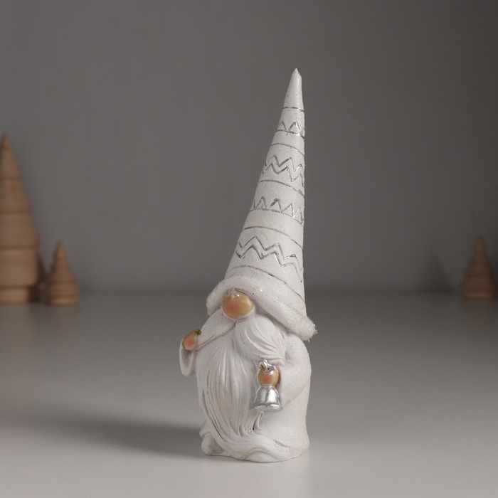 Фигурка полистоун «Дед Мороз в колпаке с узорами с подарком, колокольчиком», 6×5×16 см, МИКС — Характеристики