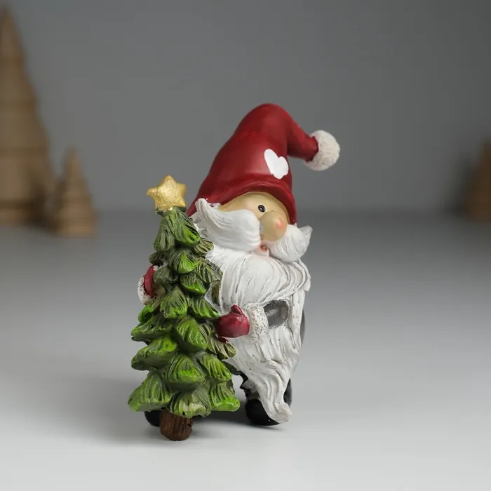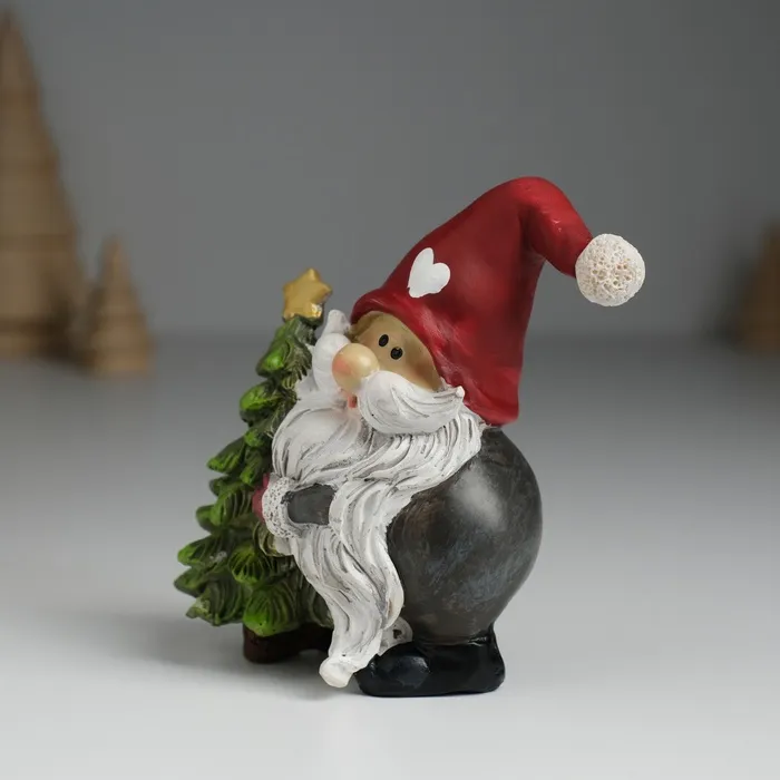 Фигурка полистоун «Дед Мороз в красном колпаке с сердцем, с зелёной ёлочкой», 6.5×4×9 см — Характеристики