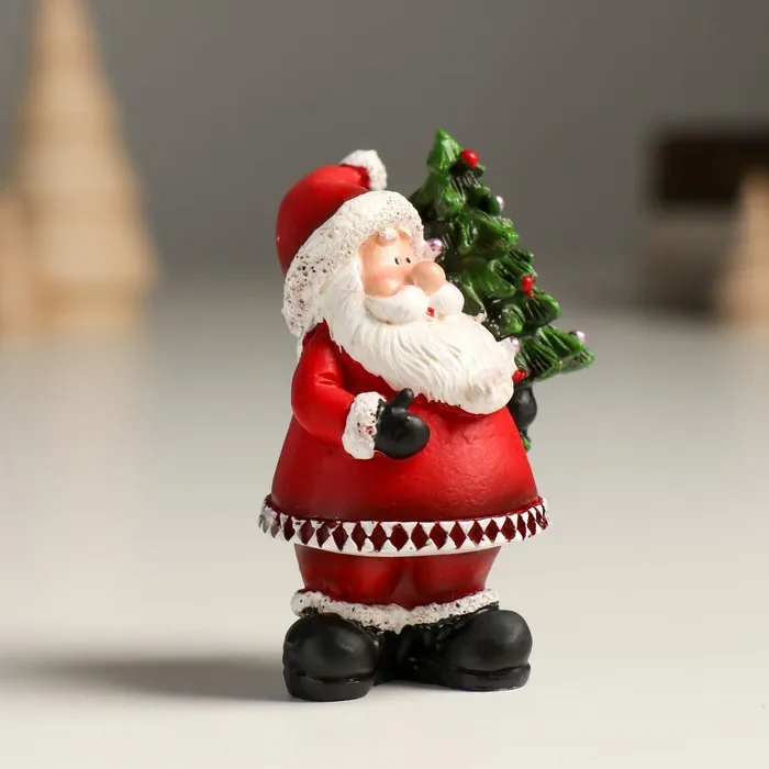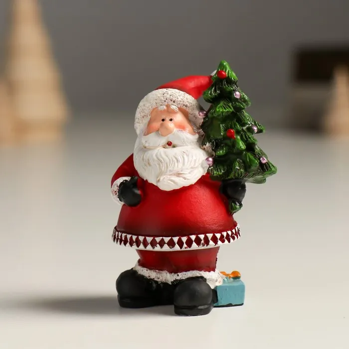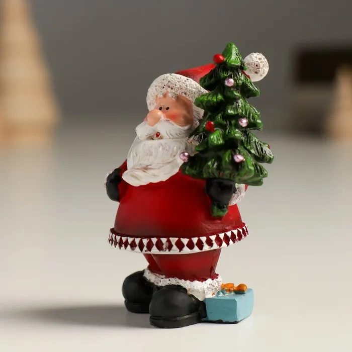 Фигурка полистоун «Дед Мороз в красном наряде с подарком», 6.5×5×4 см, МИКС — Характеристики
