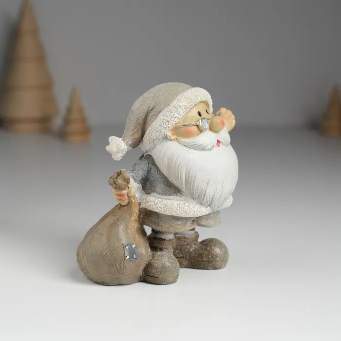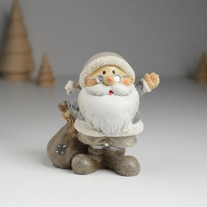 Фигурка полистоун «Дед Мороз в серой шубе в очках, с мешком подарков», 5.5×6×9 см, МИКС — Характеристики