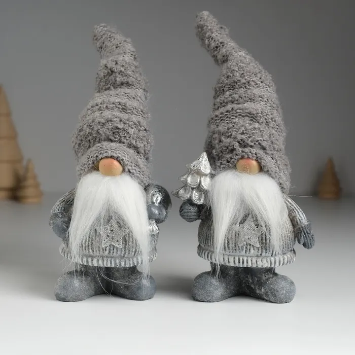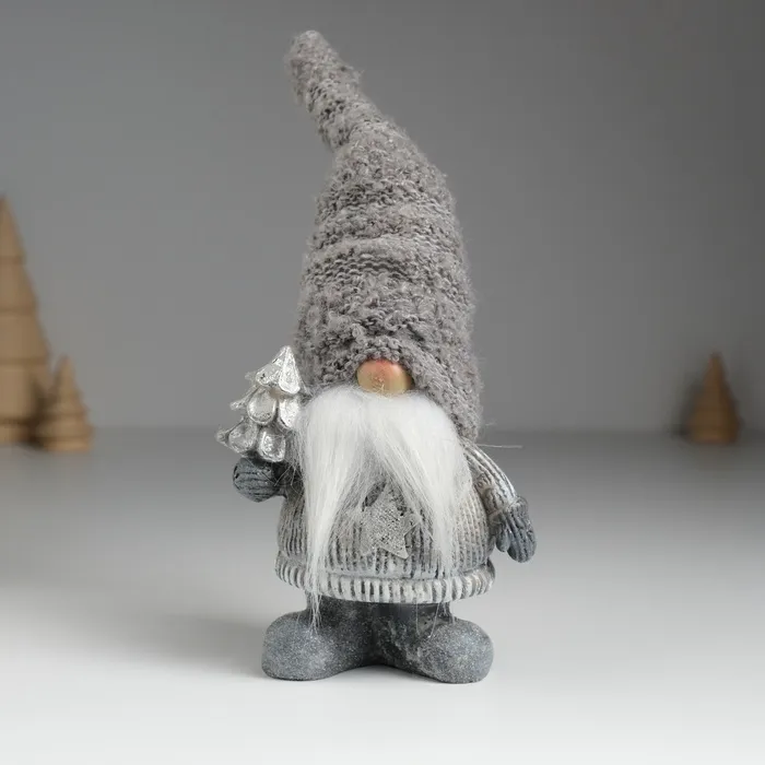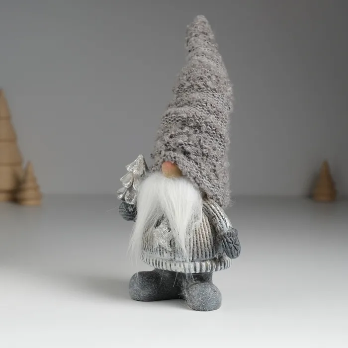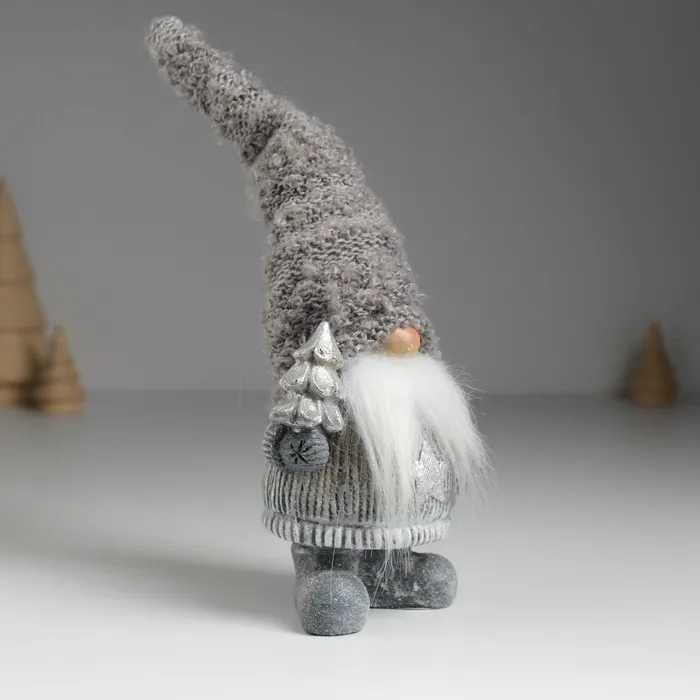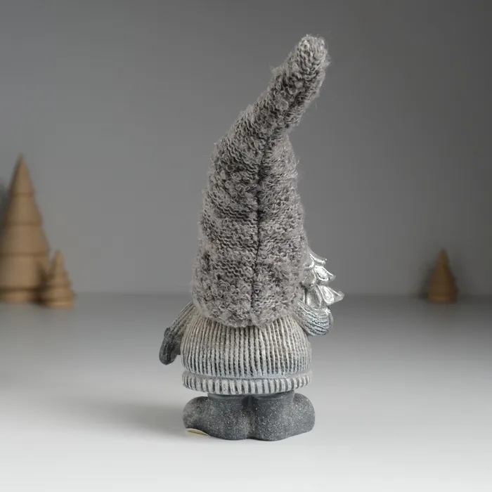 Фигурка полистоун «Дед Мороз в сером вязанном колпаке, с белой бородой», 8.5×5×18 см, МИКС — Характеристики