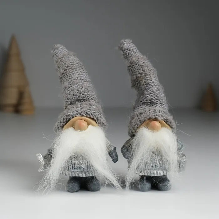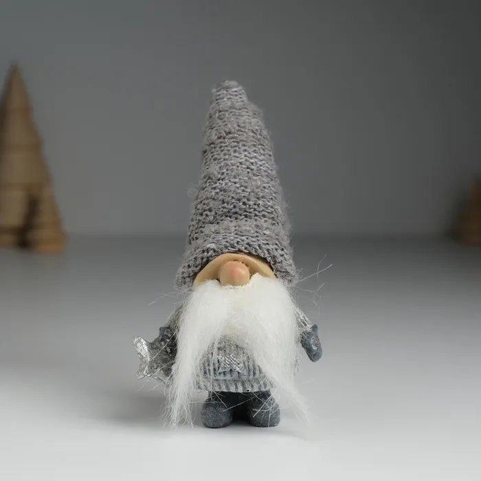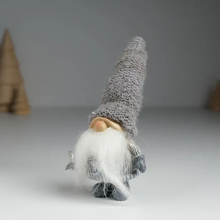 Фигурка полистоун «Дед Мороз в сером вязанном колпаке, со звездой», 5×3.5×13 см, МИКС — Характеристики