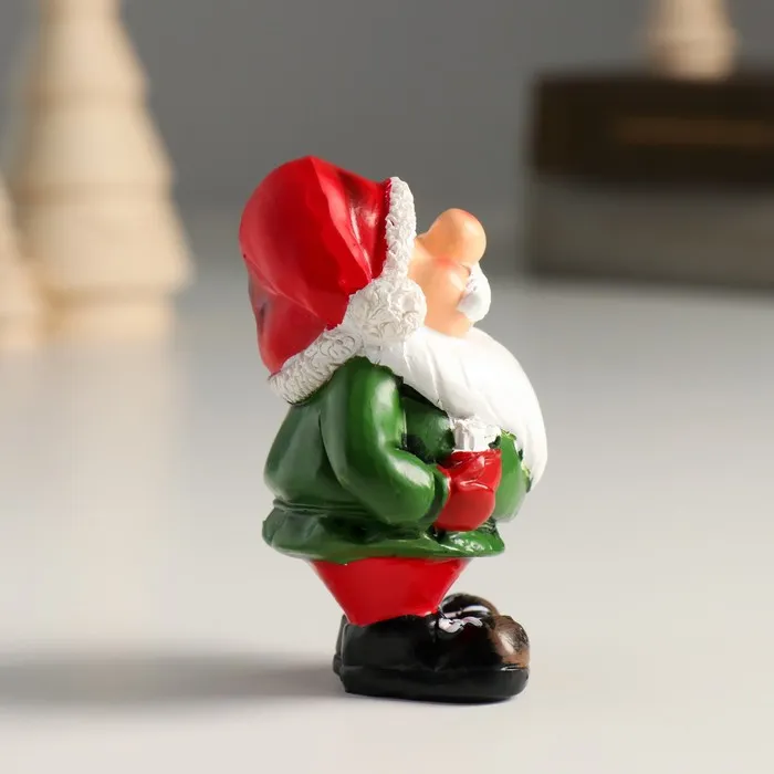 Фигурка полистоун «Дед Мороз в зелёном кафтане в колпаке, весельчак», 6×4×7.8 см, МИКС — Характеристики