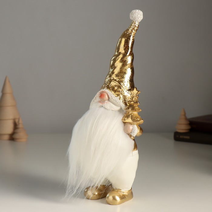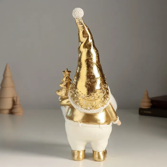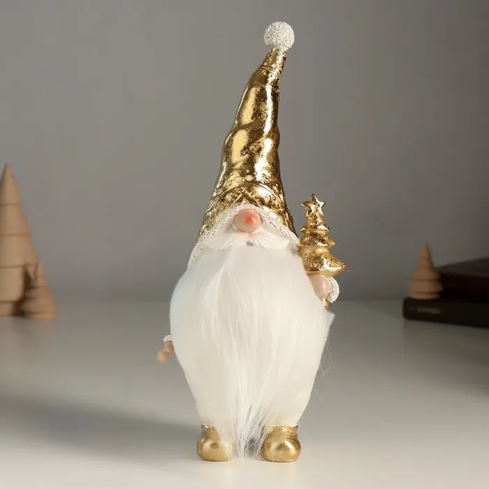 Фигурка полистоун «Дед Мороз в золотом колпаке, с ёлочкой», 11×9×25 см — Характеристики