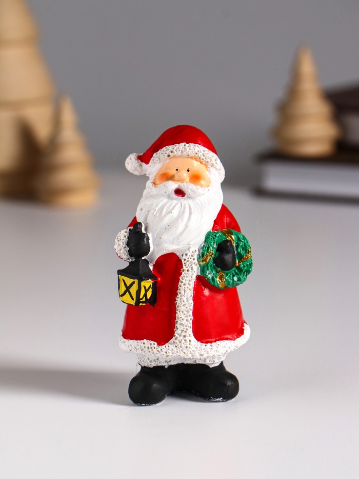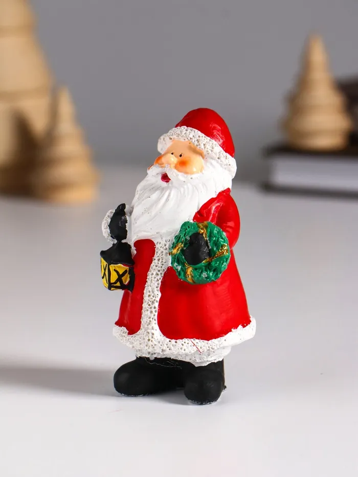 Фигурка полистоун «Дедушка Мороз в красном с колокольчиком или фонарём», 4.8×3.5×8.7 см, МИКС — Характеристики