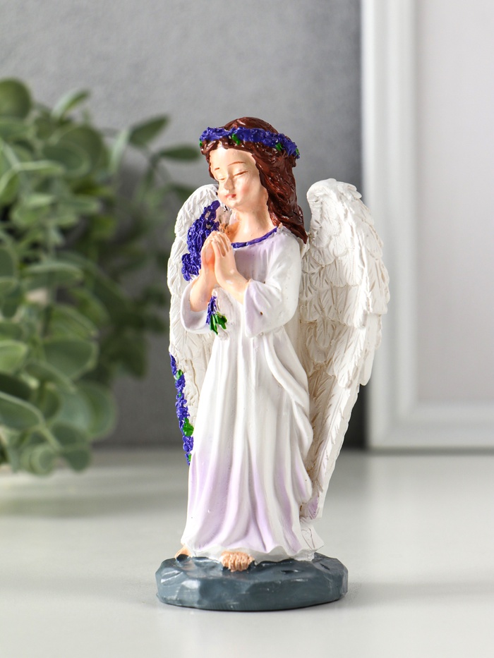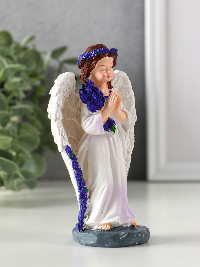 Фигурка полистоун «Девочка-ангел с букетом лаванды - молитва», фиолетовый, 7.7×4×12.5 см — Характеристики