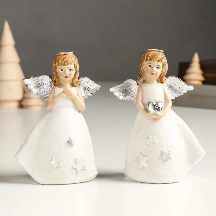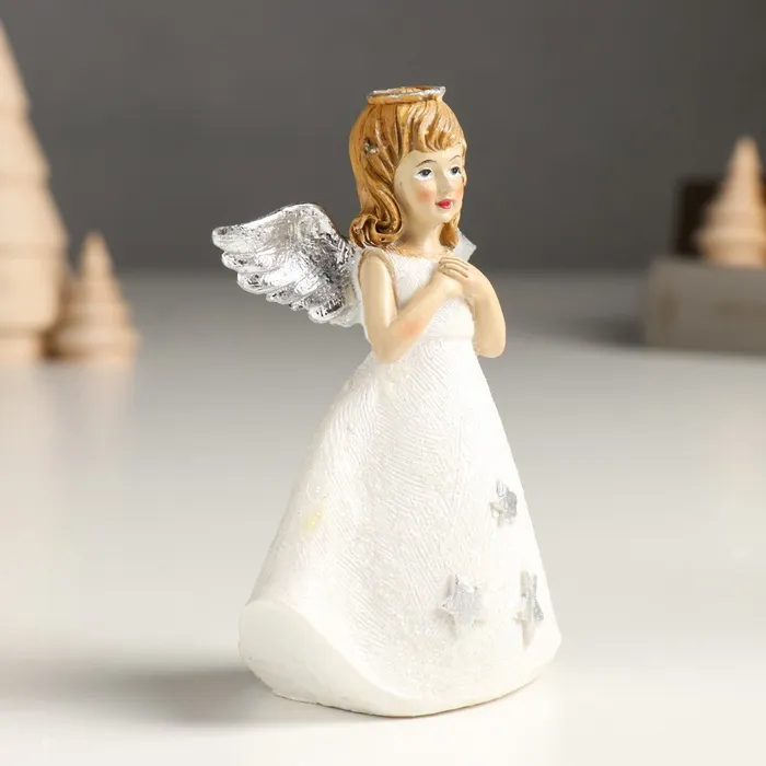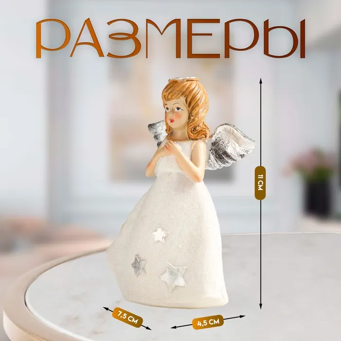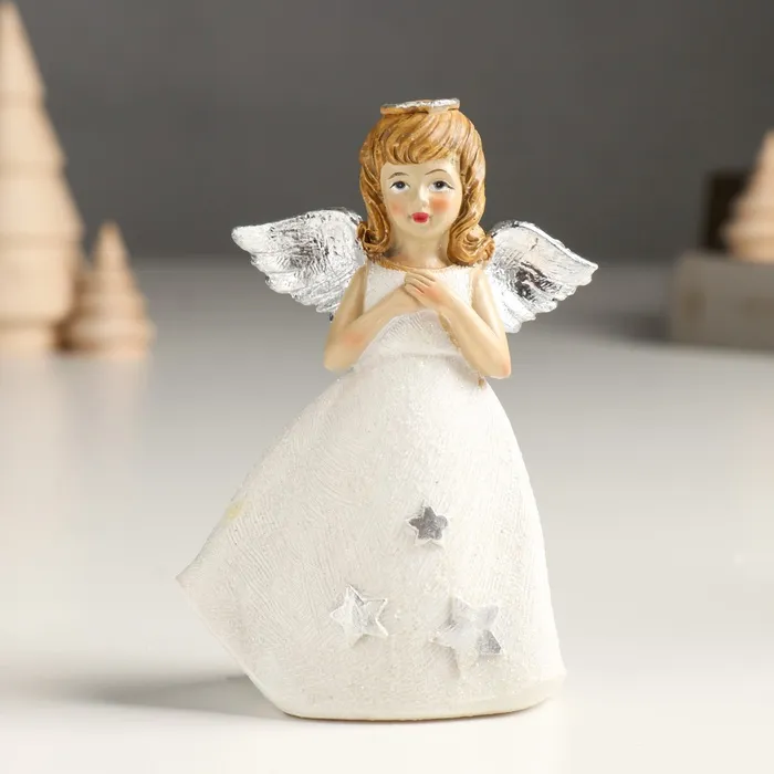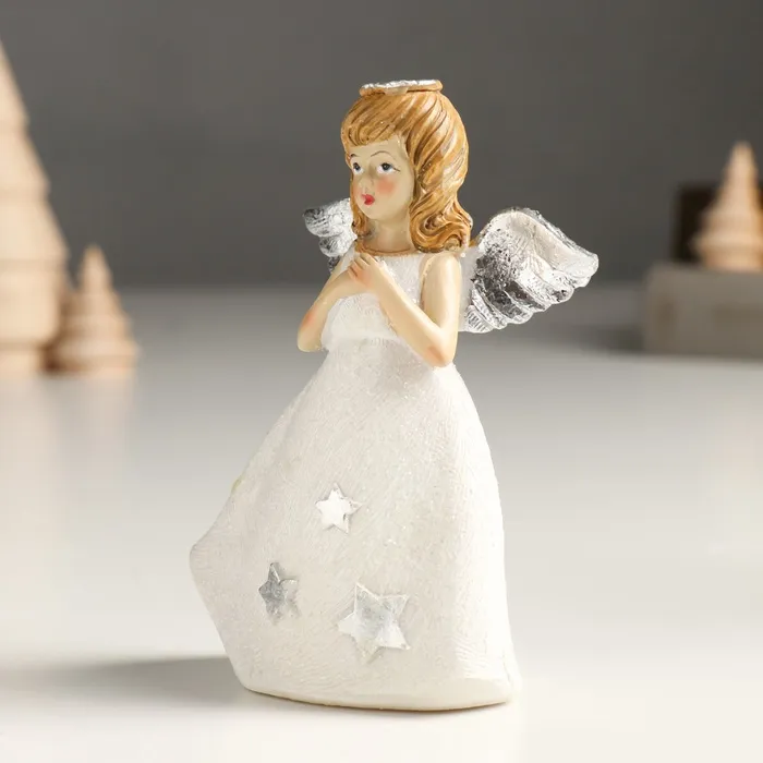 Фигурка полистоун «Девочка-ангел в белом со звёздами», блёстки, 7.5×4.5×11 см, серебро МИКС — Характеристики