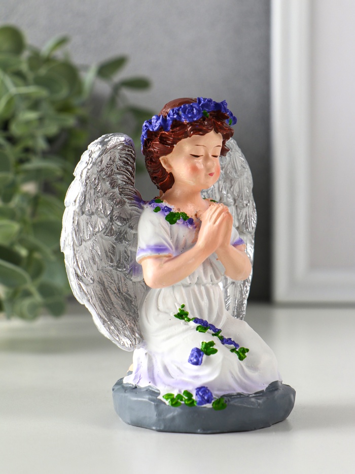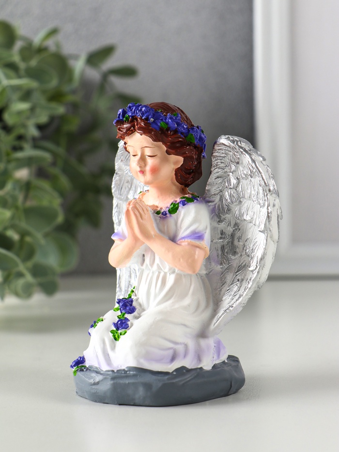 Фигурка полистоун «Девочка-ангел в цветочном платье, венке - молитва», фиолетовый, 8.5×6.2×10.5 см — Характеристики