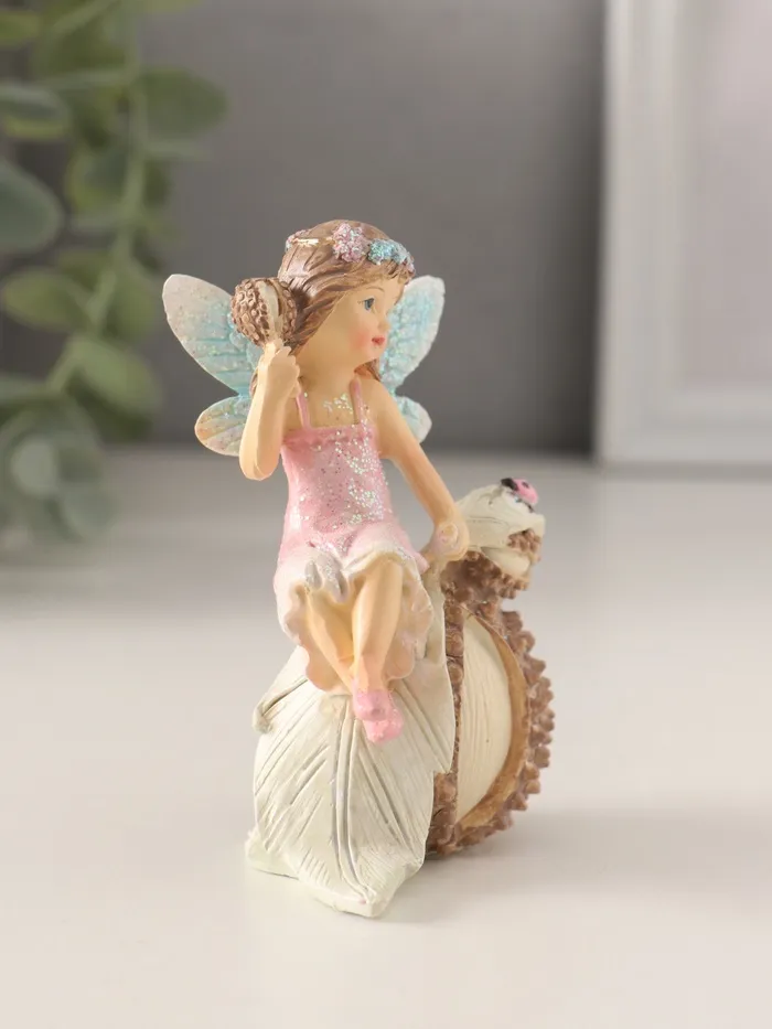 Представляем вам очаровательную фигурку, которая станет изысканным украшением вашего интерьера — девочку-фею в розовом платье, сидящую на фрукте с божьей коровкой. Эта статуэтка из полистоуна высотой 9 см привнесет в ваш дом атмосферу волшебства и уюта.