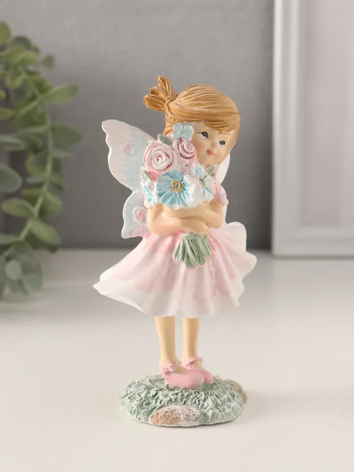 Представляем очаровательную фигурку, которая словно оживает в лучах света, наполняя пространство теплом и магией. Маленькая фея в розовом платье с букетом цветов будто сошла с книжных страниц волшебного мира. Высотой всего 13,5 см, она станет изысканным акцентом вашего интерьера, добавляя нотку романтики и беззаботности.