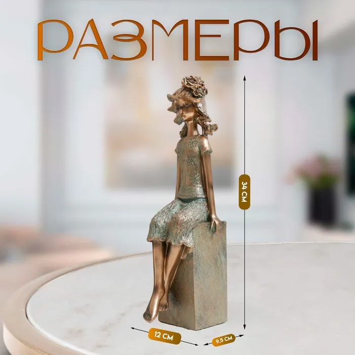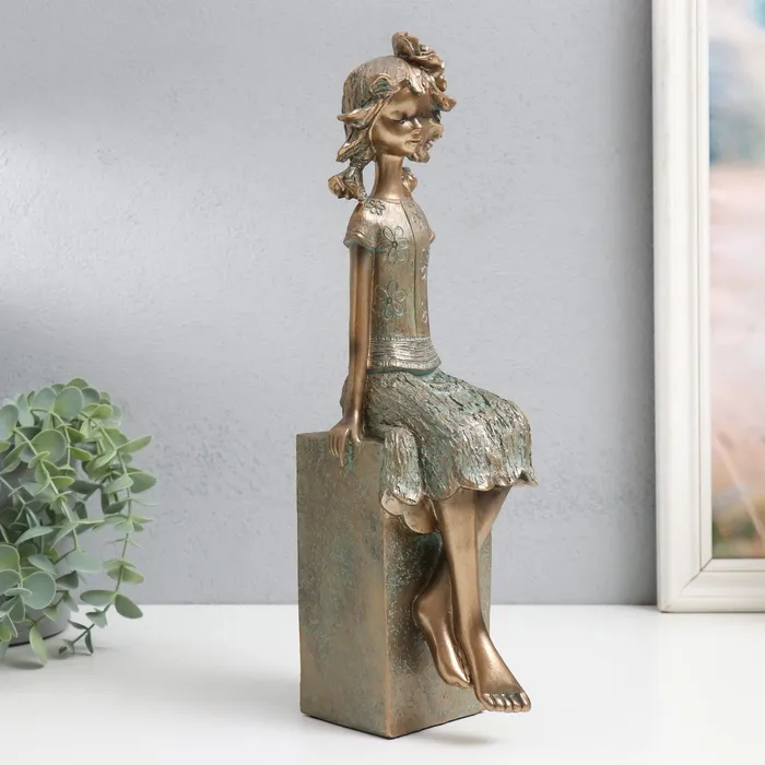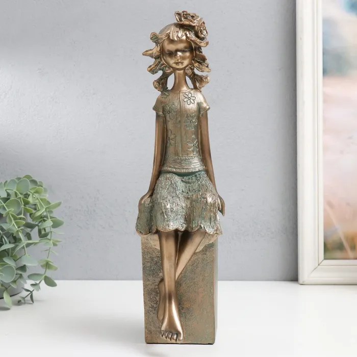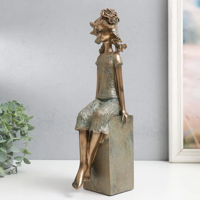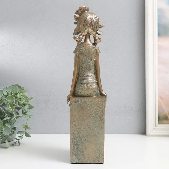 Фигурка полистоун «Девочка на кубе, с цветком в волоса×», под бронзу, 9.5×12×34 см — Характеристики
