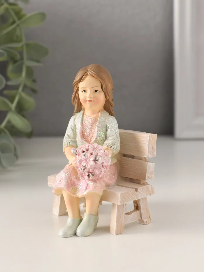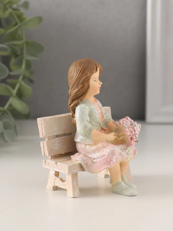 Фигурка «Девочка с букетом на скамейке» станет изящным украшением интерьера или трогательным подарком для ценителей уюта и тепла. Эта миниатюрная композиция изображает девочку, сидящую на скамейке с букетом цветов, что создаёт атмосферу нежности и гармонии. Её компактные размеры и тщательная проработка деталей делают её универсальным элементом декора.