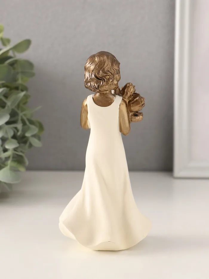 Фигурка окрашена в белый и бронзовый цвета, что придает ей элегантный и праздничный вид. Она идеально впишется в любой интерьер, добавив нотку уюта и тепла. Благодаря своей универсальности, статуэтка может быть использована как дома, так и в офисе.