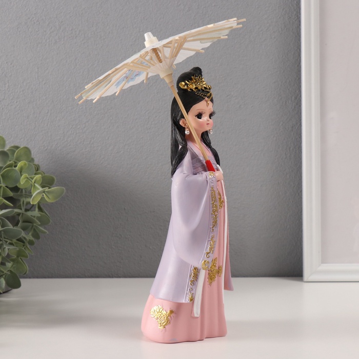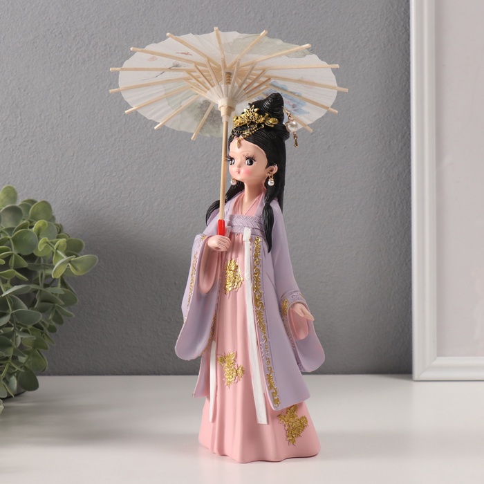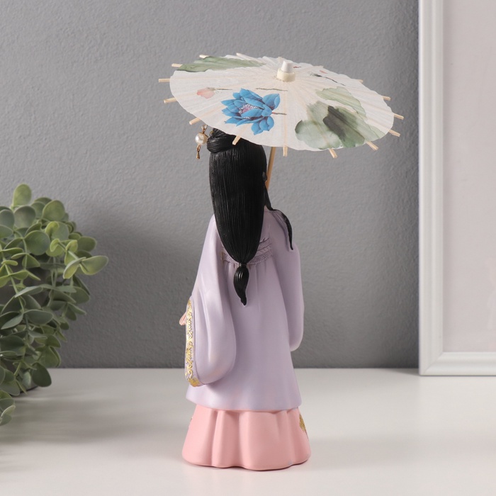 Фигурка полистоун «Девочка в кимоно с зонтиком», розово-сиреневый, 9×12×25 см — Характеристики