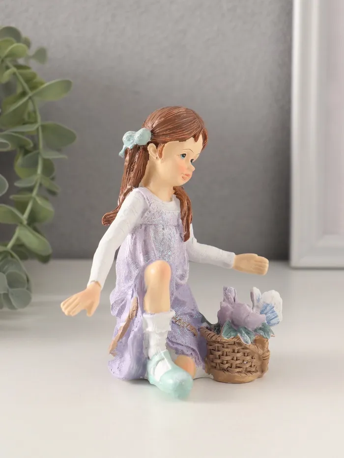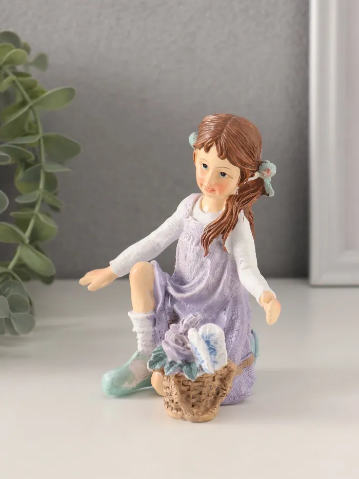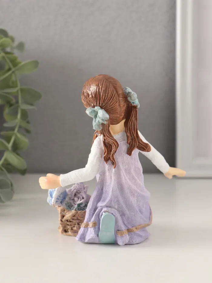 Фигурка полистоун «Девочка в сиреневом сарафане с корзинкой цветов», 11×6.5×12 см — Характеристики