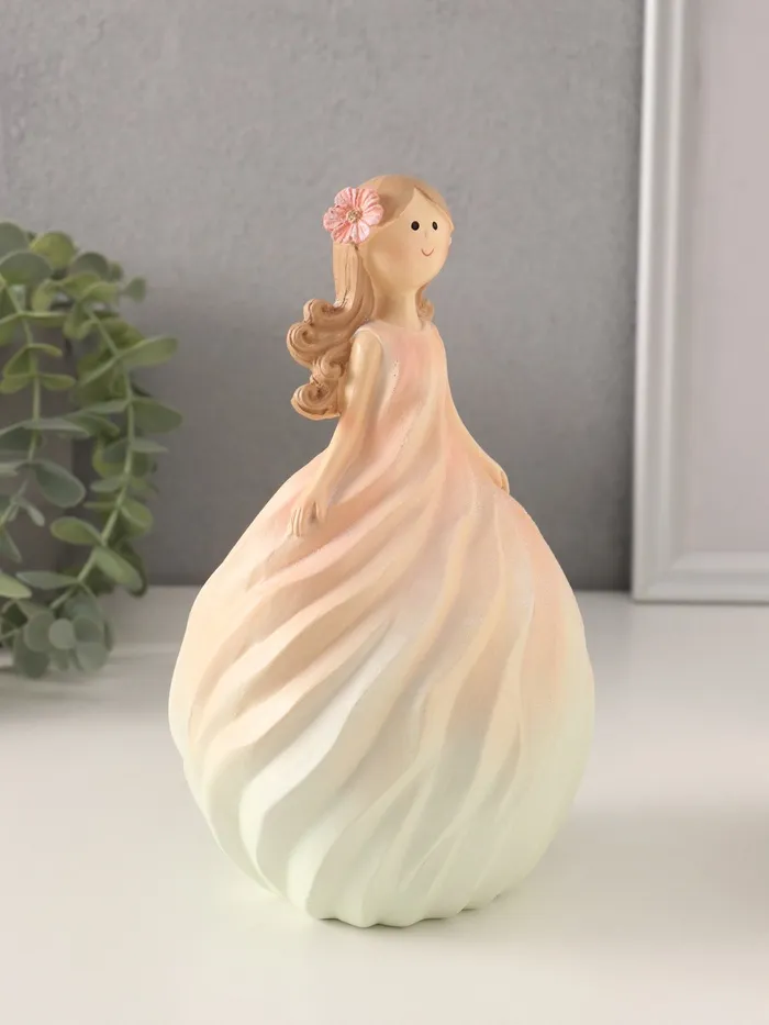 Фигурка полистоун «Девочка-зефирка с цветком в волосах», розово-жёлтый, 11.5×10.5×18.5 см — Характеристики