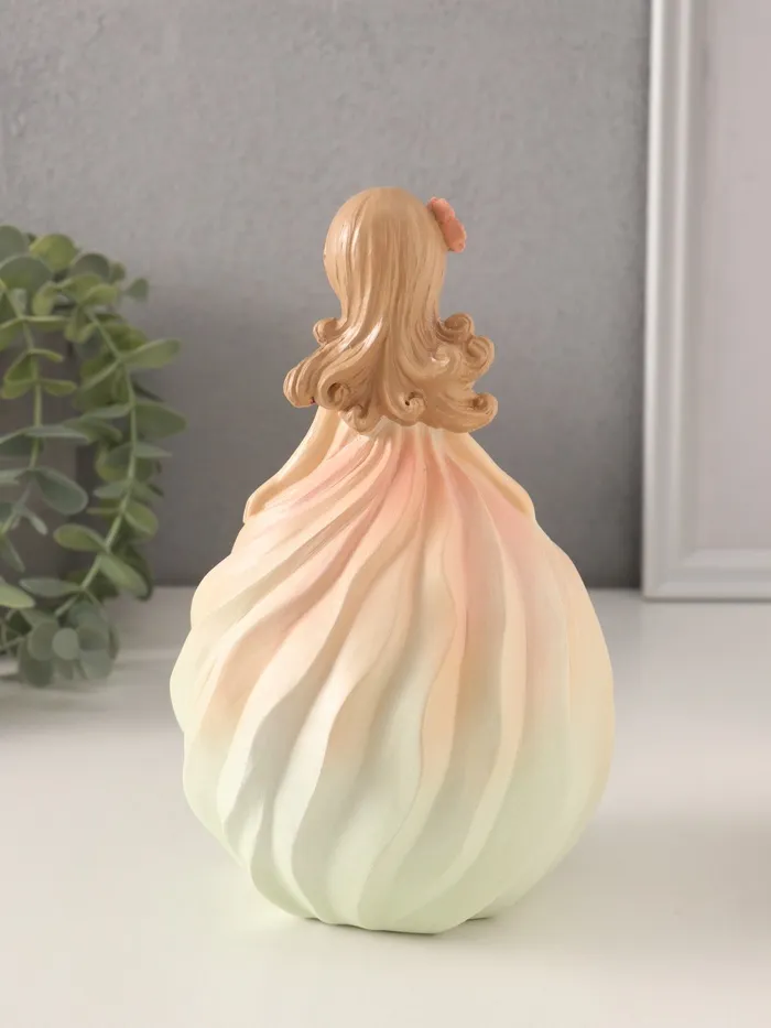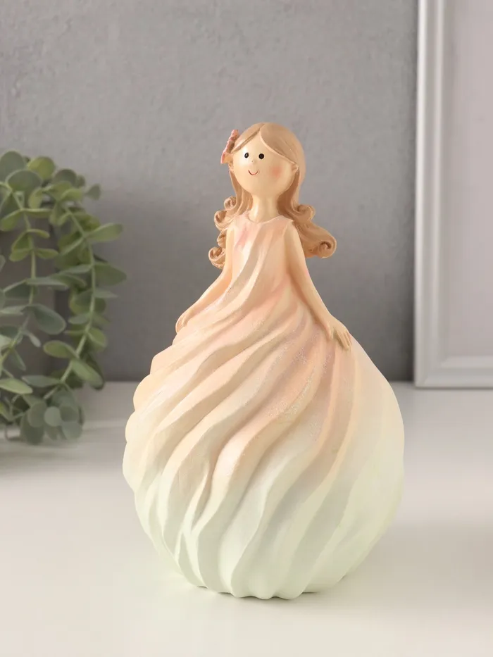 Фигурка из полистоуна с изображением девочки-зефирки станет изящным украшением вашего интерьера. Этот аксессуар с цветком в волосах и нежными розово-жёлтыми оттенками создаёт атмосферу тепла и уюта.