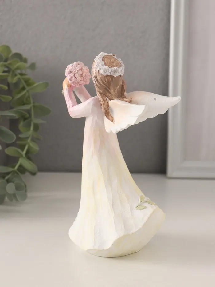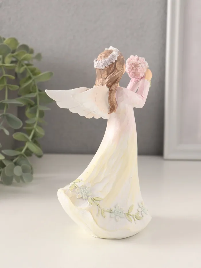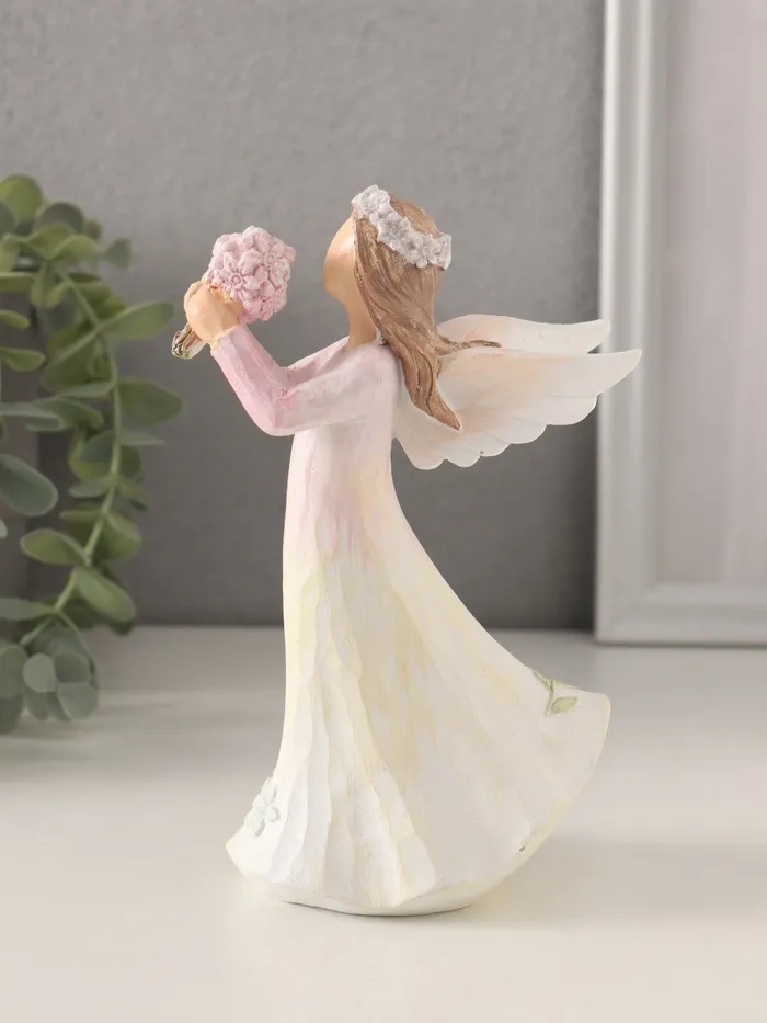 Фигурка полистоун «Девушка-ангел в нежно-розовом платье, с букетом незабудок», 10×6.5×16 см — Характеристики