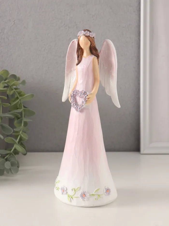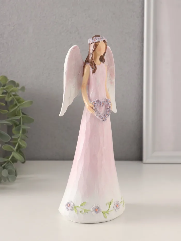Фигурка полистоун «Девушка-ангел в нежно-розовом платье с венком-сердце», 8.5×6×21.5 см — Характеристики