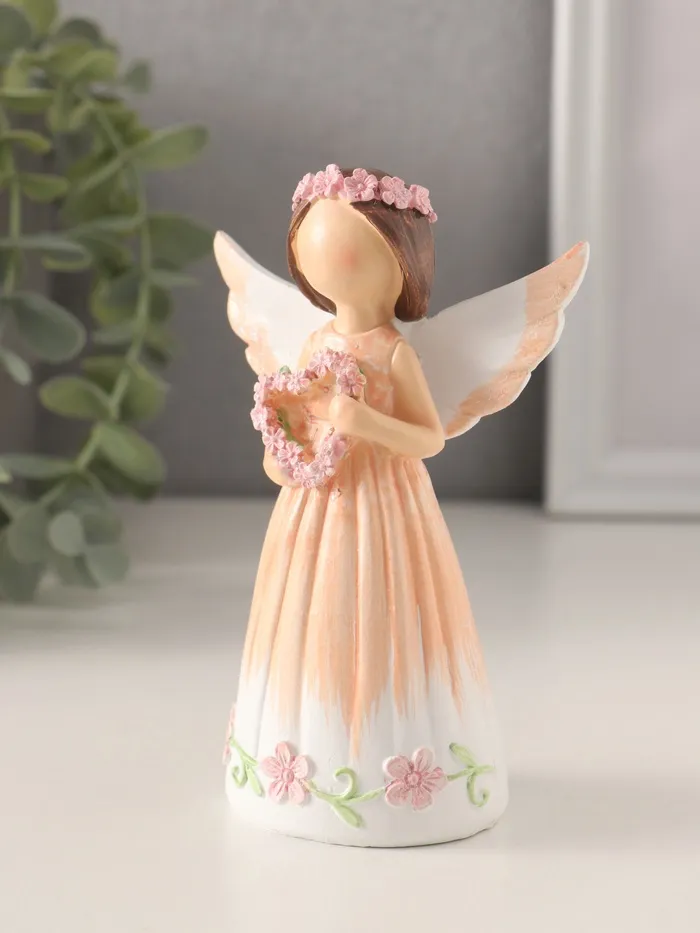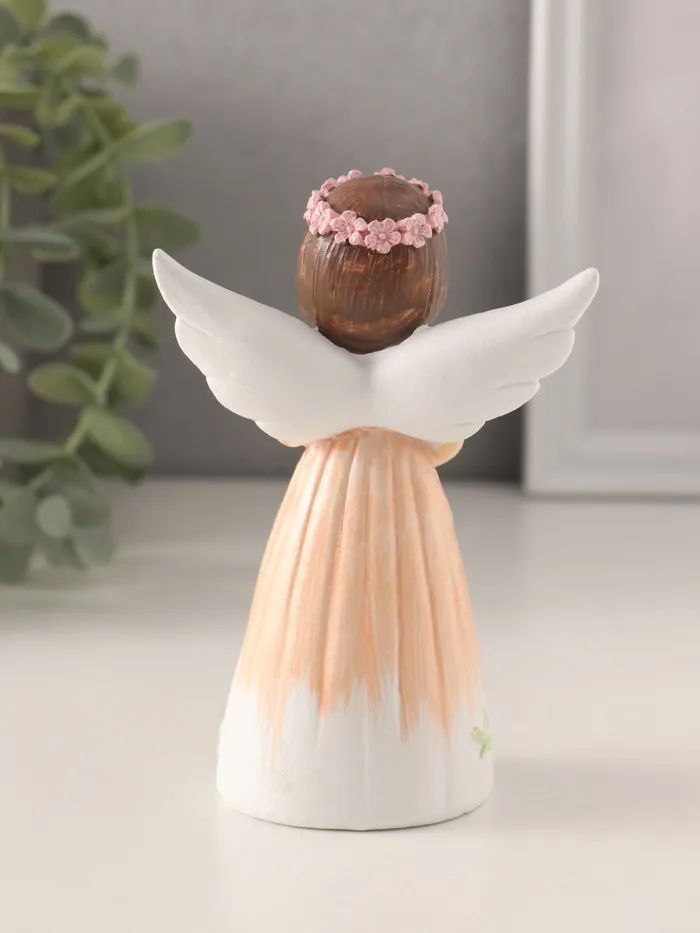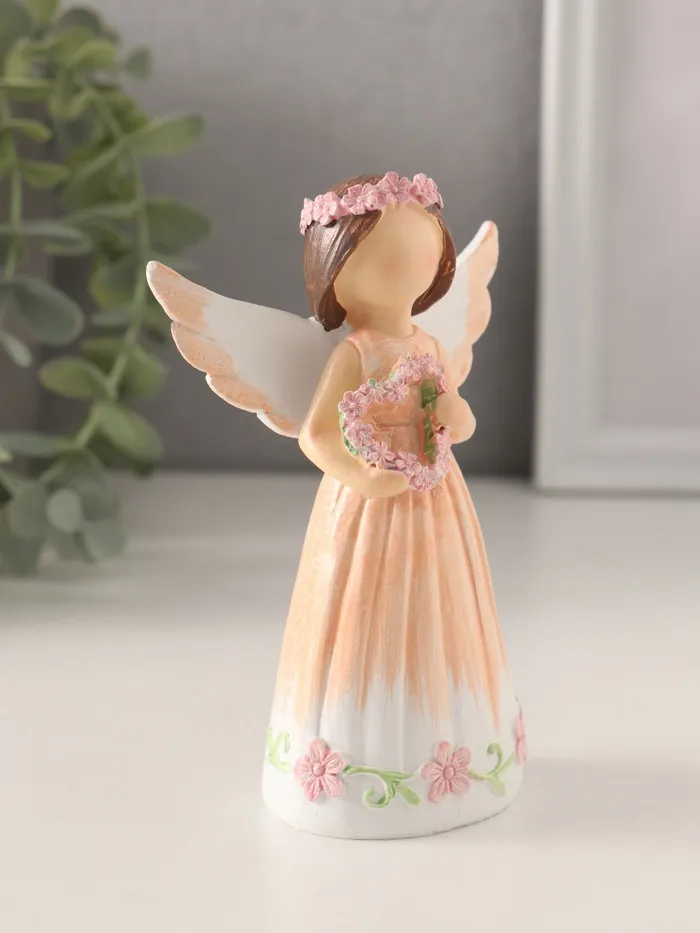 Фигурка полистоун «Девушка-ангел в персиковом платье, с венком-сердце», 8×4.5×12 см — Характеристики