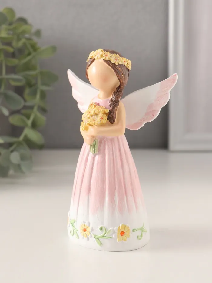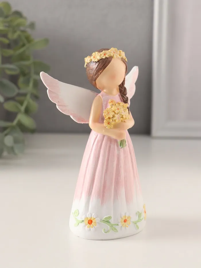 Фигурка полистоун «Девушка-ангел в розовом платье, с жёлтыми незабудками», 8×4.5×12 см — Характеристики