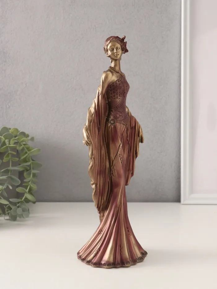 Погрузитесь в атмосферу элегантности прошлого с этой изысканной фигуркой, которая станет настоящим украшением вашего интерьера. Изделие выполнено в стиле 20-30-х годов, передавая дух времени через утончённые детали и изящные линии. Бордово-фиолетовый оттенок платья добавляет образу глубины и роскоши, делая фигурку центром внимания в любом пространстве.