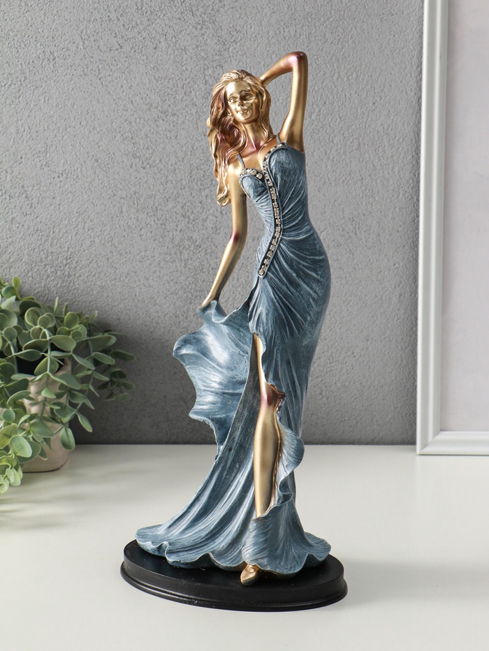 Фигурка полистоун «Девушка в синем вечернем платье со стразами», 11.8×16.5×37 см — Характеристики