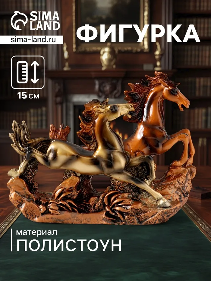Фигурка полистоун «Дикие лошади скачут в прериях», под бронзу, 20×5.5×15 см — Характеристики