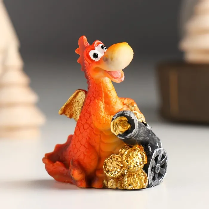 Фигурка полистоун «Дракон с монетами и пушкой», 5.8×4×5.6 см, МИКС — Характеристики