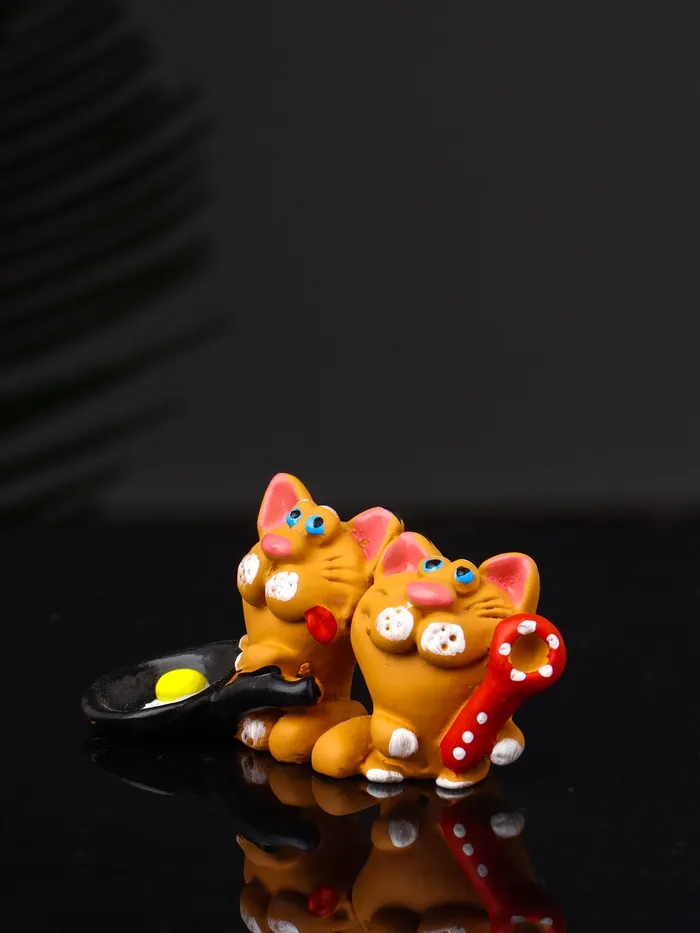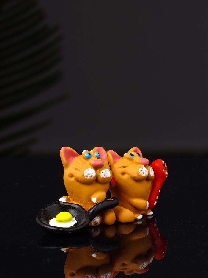 Представляем вашему вниманию небольшую, но удивительно выразительную фигурку, которая станет ярким акцентом в любом интерьере. Эта миниатюрная скульптура изображает двух очаровательных котов, занятых важным делом — приготовлением яичницы. Изделие выполнено в теплой коричнево-разноцветной гамме, что добавляет ему особого шарма и универсальности.