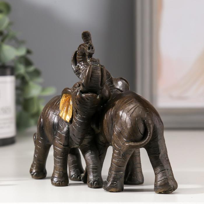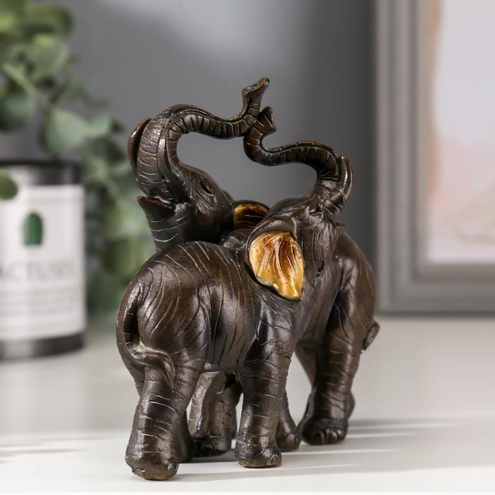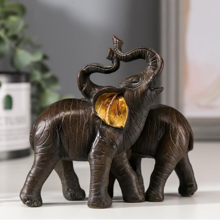 Фигурка полистоун «Два слона африканских коричневых», золотые ушки, 11×12×5.5 см — Характеристики