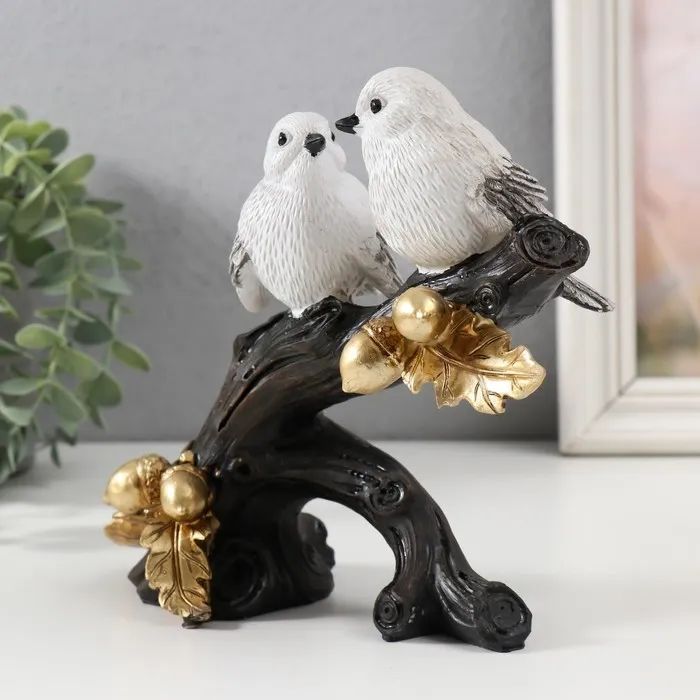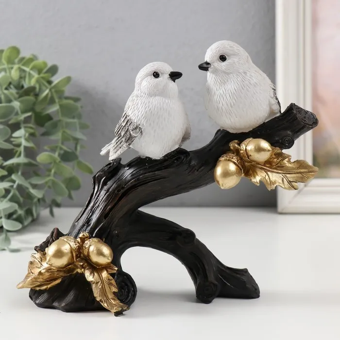 Фигурка полистоун «Две белые птицы на ветке с желудями», 20×8×18 см — Характеристики