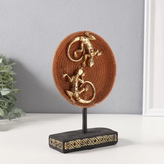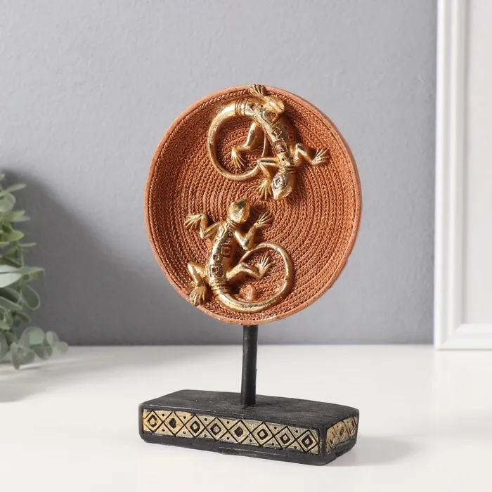 Фигурка полистоун «Две ящерицы на плетёном круге», золото, 5×12×20.5 см — Характеристики