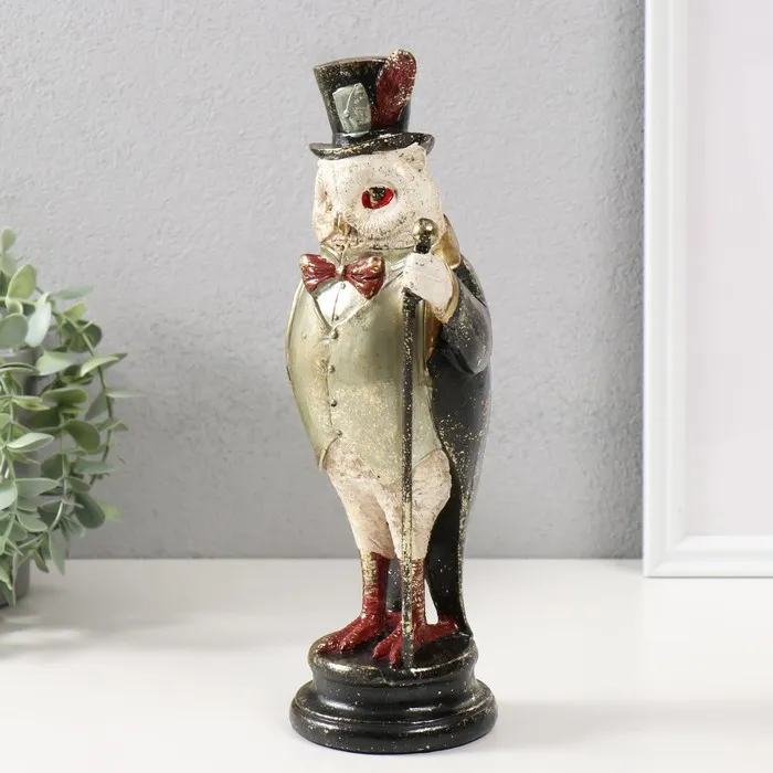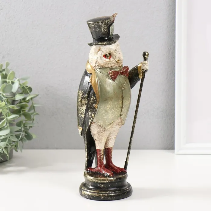 Фигурка полистоун «Филин в цилиндре с пером, с тростью», 12×10×30 см — Характеристики