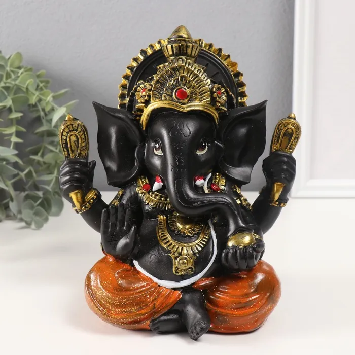 Фигурка полистоун «Ганеша чёрный, в оранжевых шаровар», 12×17.5×21 см — Характеристики