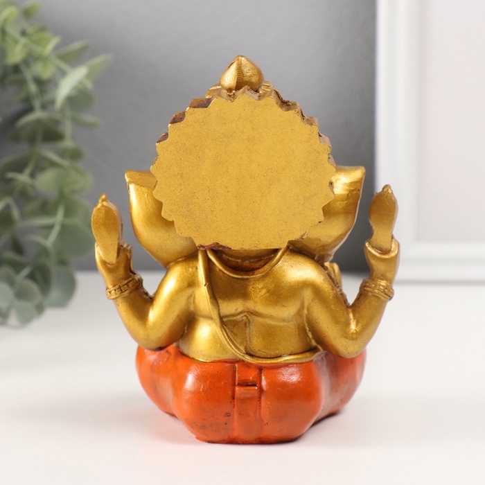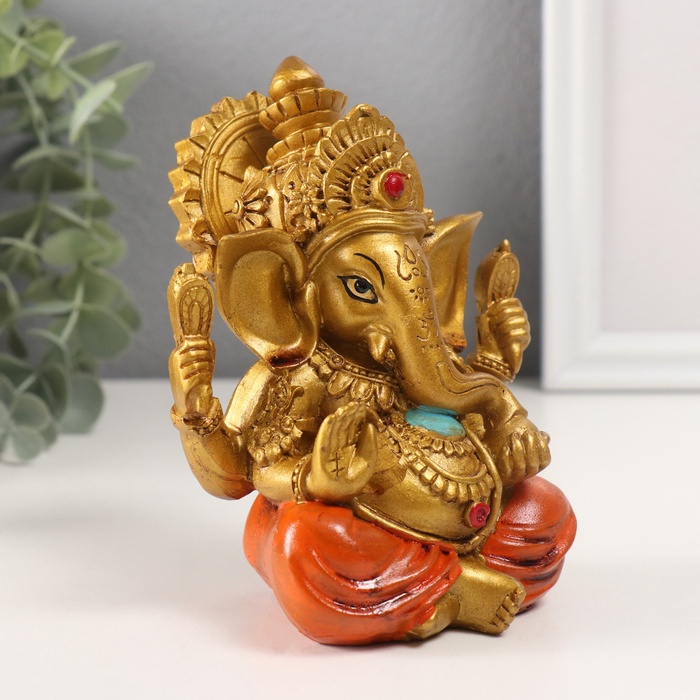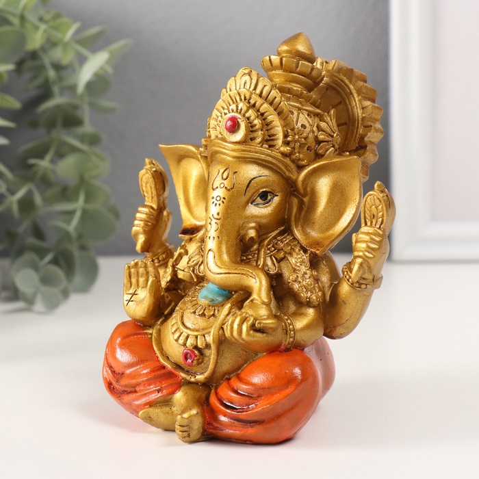 Этот изысканный образец искусства привнесёт в ваш дом гармонию и благополучие. Фигурка, выполненная из прочного полистоуна с эффектом бронзы, изображает Ганешу — мудрого покровителя удачи и преодоления препятствий. Сочетание золотистых оттенков и ярких оранжевых шаровар создаёт атмосферу тепла и позитивной энергии.
