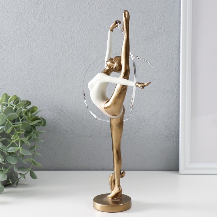 Оригинальная статуэтка «Гимнастка с лентой» станет ярким акцентом в вашем интерьере или запоминающимся подарком для ценителей спортивной эстетики. Благодаря своей высоте 32,5 см и выразительной детализации, фигурка привлекает внимание своей грацией и изяществом. Белые и бронзовые оттенки добавляют изделию элегантности, делая его универсальным решением для дома, офиса или спортивного пространства.