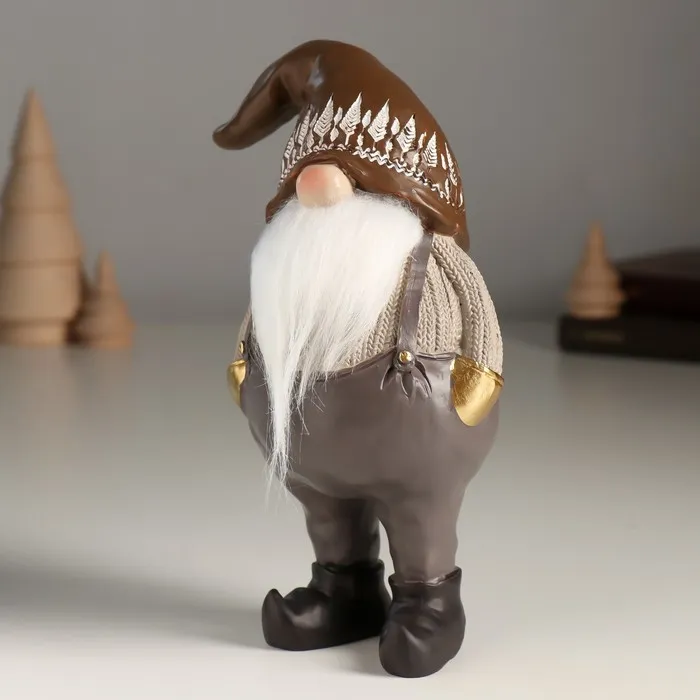 Фигурка полистоун «Гном в серых штанах, в колпаке с ёлочками», 11×7×17.5 см — Характеристики