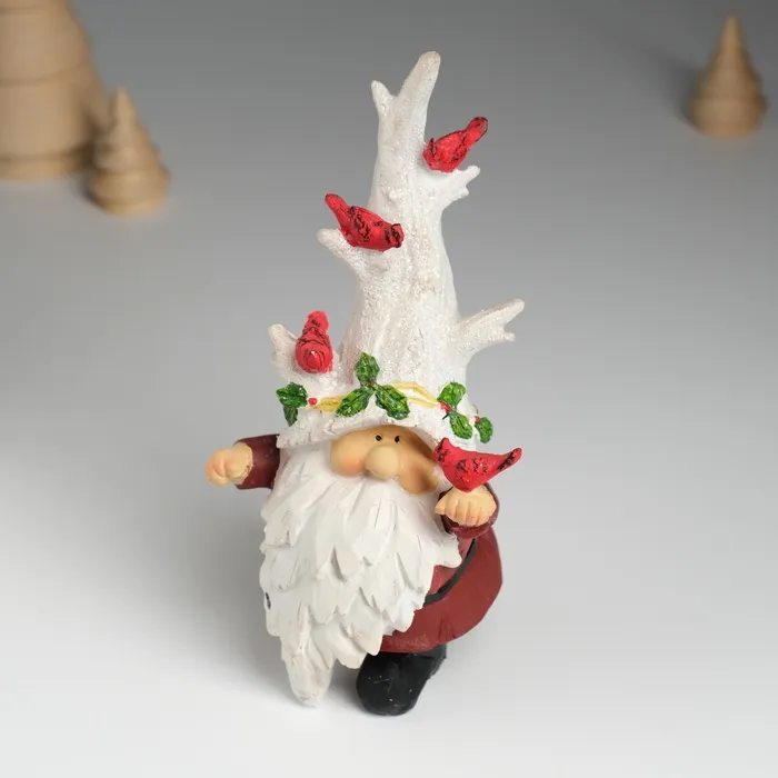 Фигурка полистоун «Гном в шапке деревом, с птичками», 8.5×7.5×17 см — Характеристики