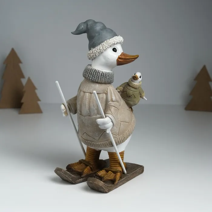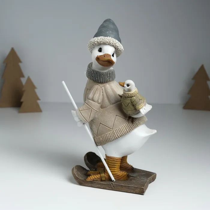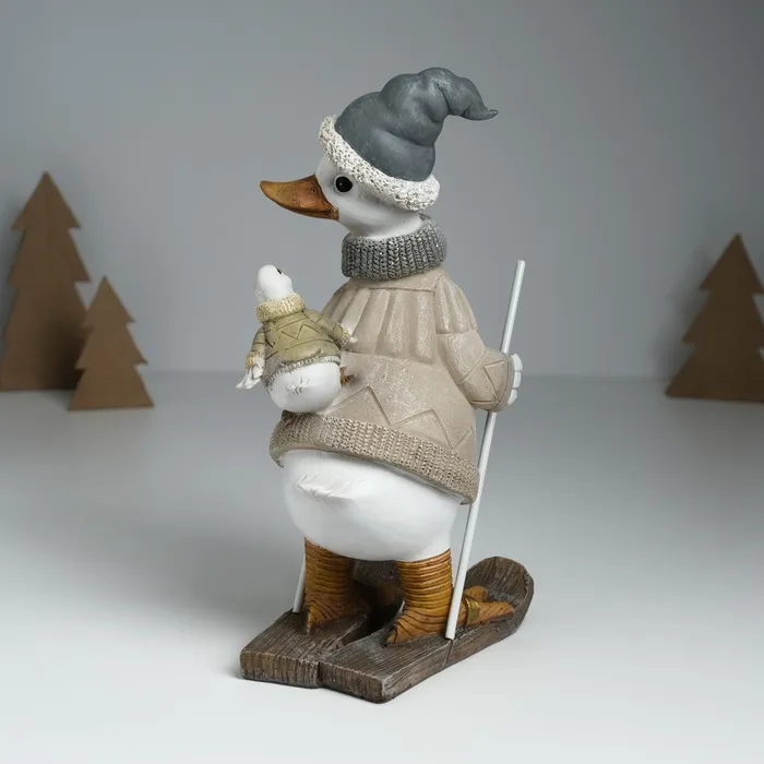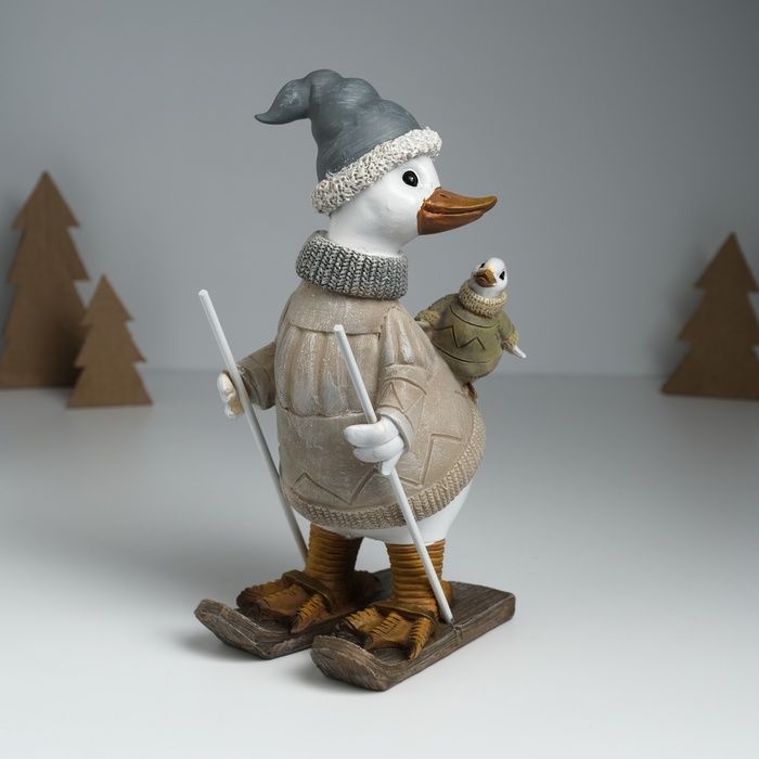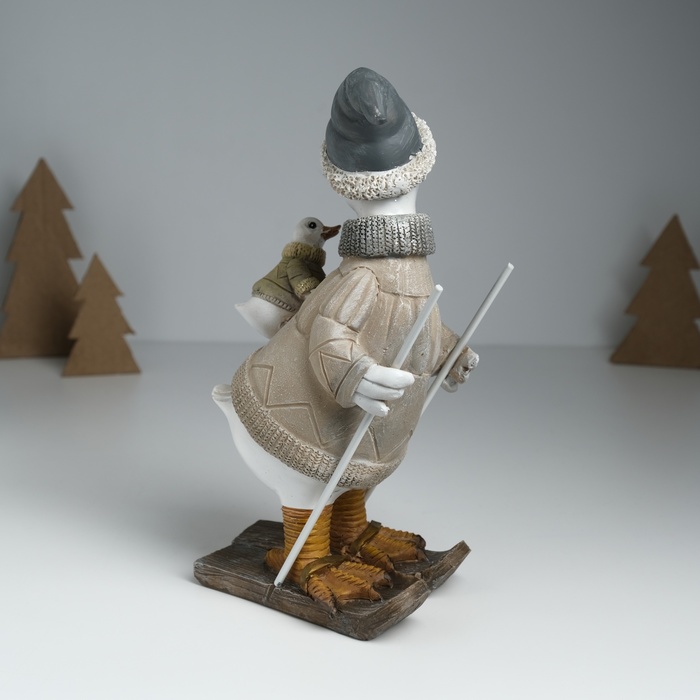 Фигурка полистоун «Гусь на лыжах, с гусёнком на спине», серо-бежевый, 9.5×13.5×23.5 см — Характеристики