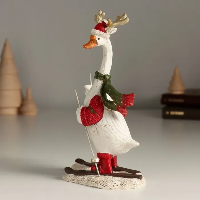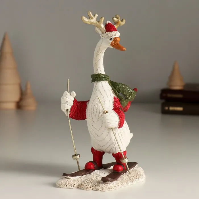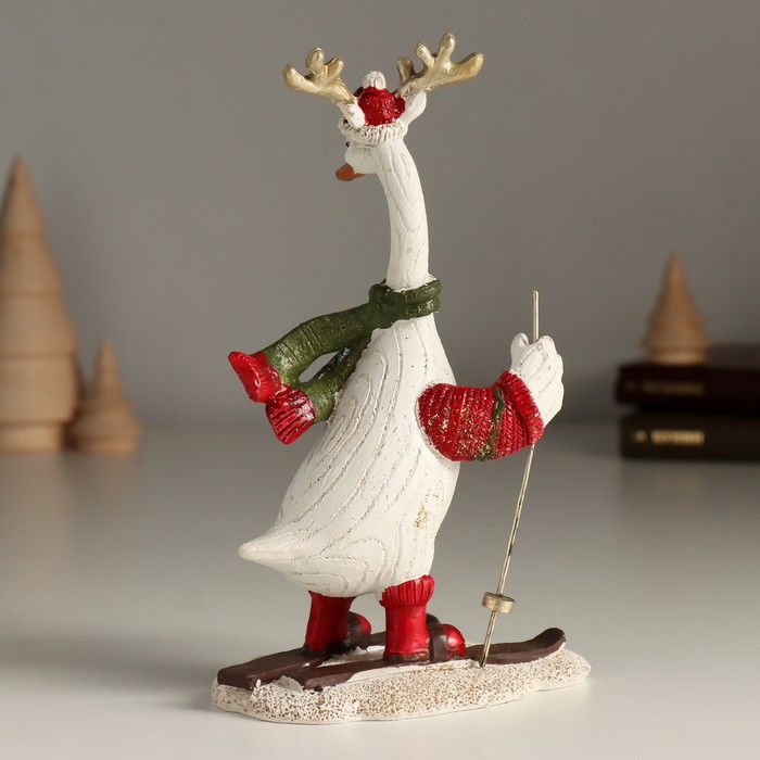 Фигурка полистоун «Гусь с оленьими рожками на лыжах», 10×6×16.5 см — Характеристики