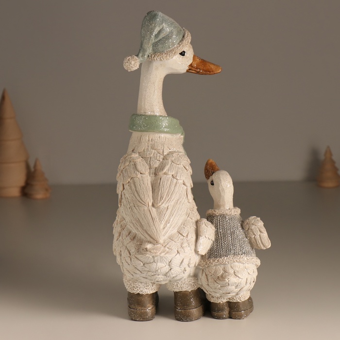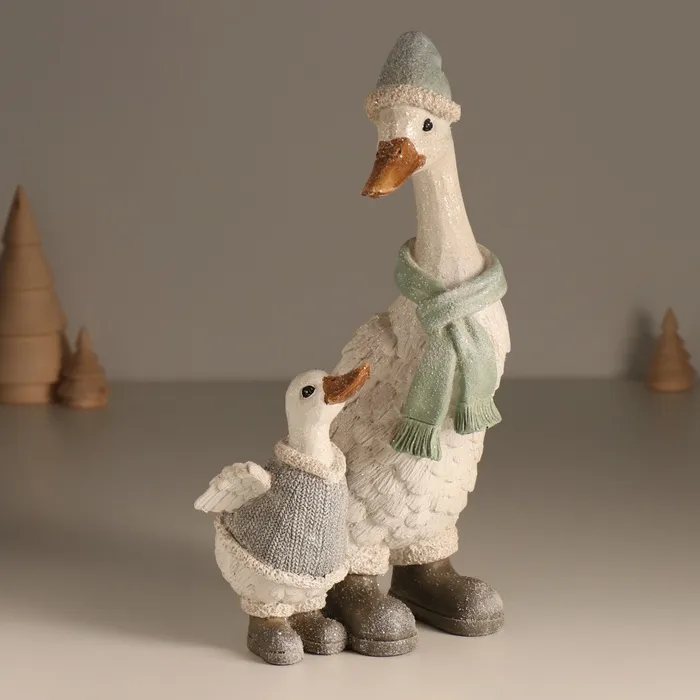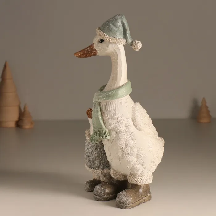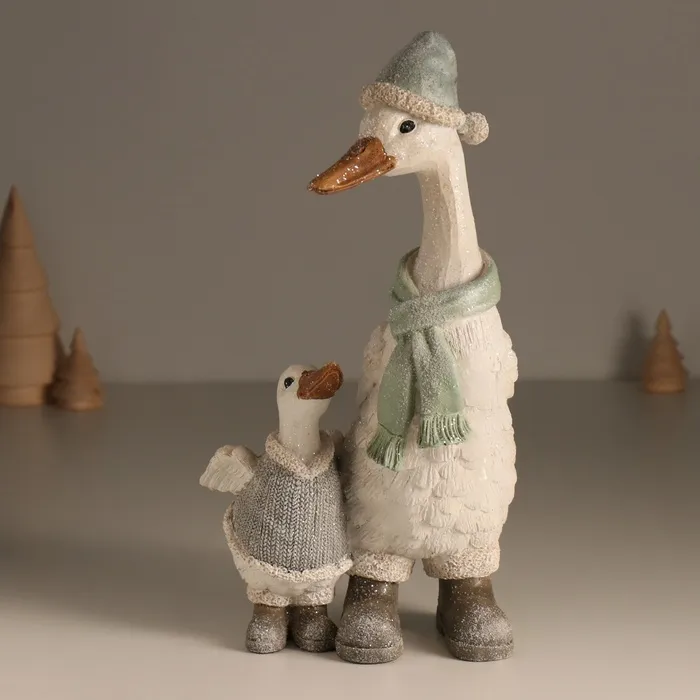 Фигурка полистоун «Гусь в длинном колпаке и шарфе, с гусёнком», 14.5×13.5×27.5 см — Характеристики
